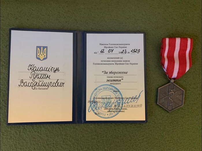 Для довідки: Нагрудний знак Головнокомандувача Збройних Сил України «За збереження життя» вручається військовослужбовцям, працівникам Збройних Сил України, які врятували життя військовослужбовцю чи працівнику ЗСУ, іншій особі у мирний час, під час участі у бойових діях, об’єднаних, антитерористичних операціях, а також операціях із підтримання миру та безпеки, ліквідації наслідків природних та техногенних катастроф, інших надзвичайних ситуацій.