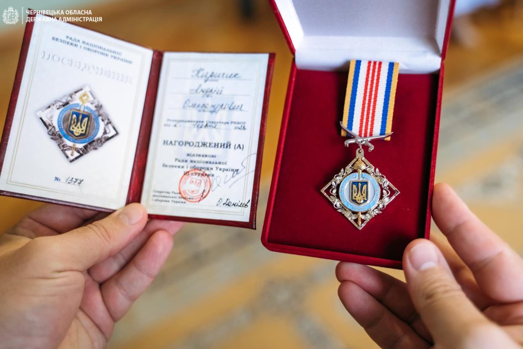 «Мав честь вручити медаль «Відзнака Ради національної безпеки і оборони України» ІІІ ступеня буковинському медику, т.в.о. директора Обласної бази спеціального медичного постачання Андрієві Киричику», – зазначив голова ОВА Руслан Запаранюк.