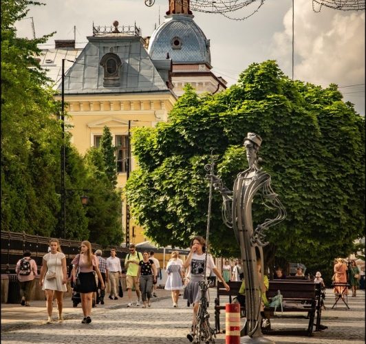 Але ні. На одній із лавочок помітила військового. Він сидів задуманий, серйозний. Як мені здалося, спостерігав за тим, що відбувається довкола, і відчував себе самотнім на цьому святі життя. Можливо, він лише недавно повернувся на кілька днів у відпустку з передової і зараз ніяк не може звикнутися з мирним ритмом життя ? Не знаю…