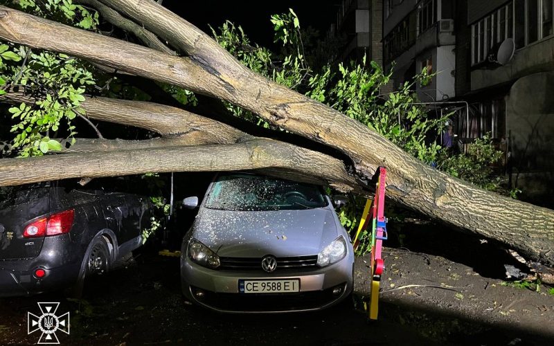 “Через сильні пориви вітру дерево впало на 4 припарковані автомобілі, пошкодило їх та перекрило міжбудинковий проїзд. Фахівці групи рятувальних та відновлювальних робіт Аварійно-рятувального загону спеціального призначення за допомогою спецінструмента розпилили повалене дерево та прибрали гілля”, – йдеться у повідомленні.