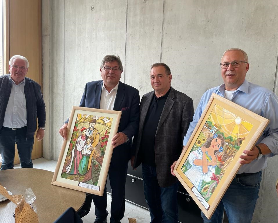 Міський голова Василь Козак подарував колегам з Німеччини картини учнів класу Сокирянської художньої школи села Романківці. Патріотичні картини, виконані руками юних жителів Сокирянщини, щиро вразили німецьких партнерів своєю красою та багатогранністю. Твори мистецтва талановитих дітей прикрашатимуть приміщення органів місцевого самоврядування Німеччини.