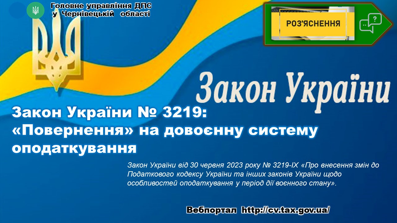 Фахівці Головного управління ДПС у Чернівецькій області інформують, що з 1 серпня 2023 року набрав чинності Закон України від 30 червня 2023 року № 3219-ІХ «Про внесення змін до Податкового кодексу України та інших законів України щодо особливостей оподаткування у період дії воєнного стану».