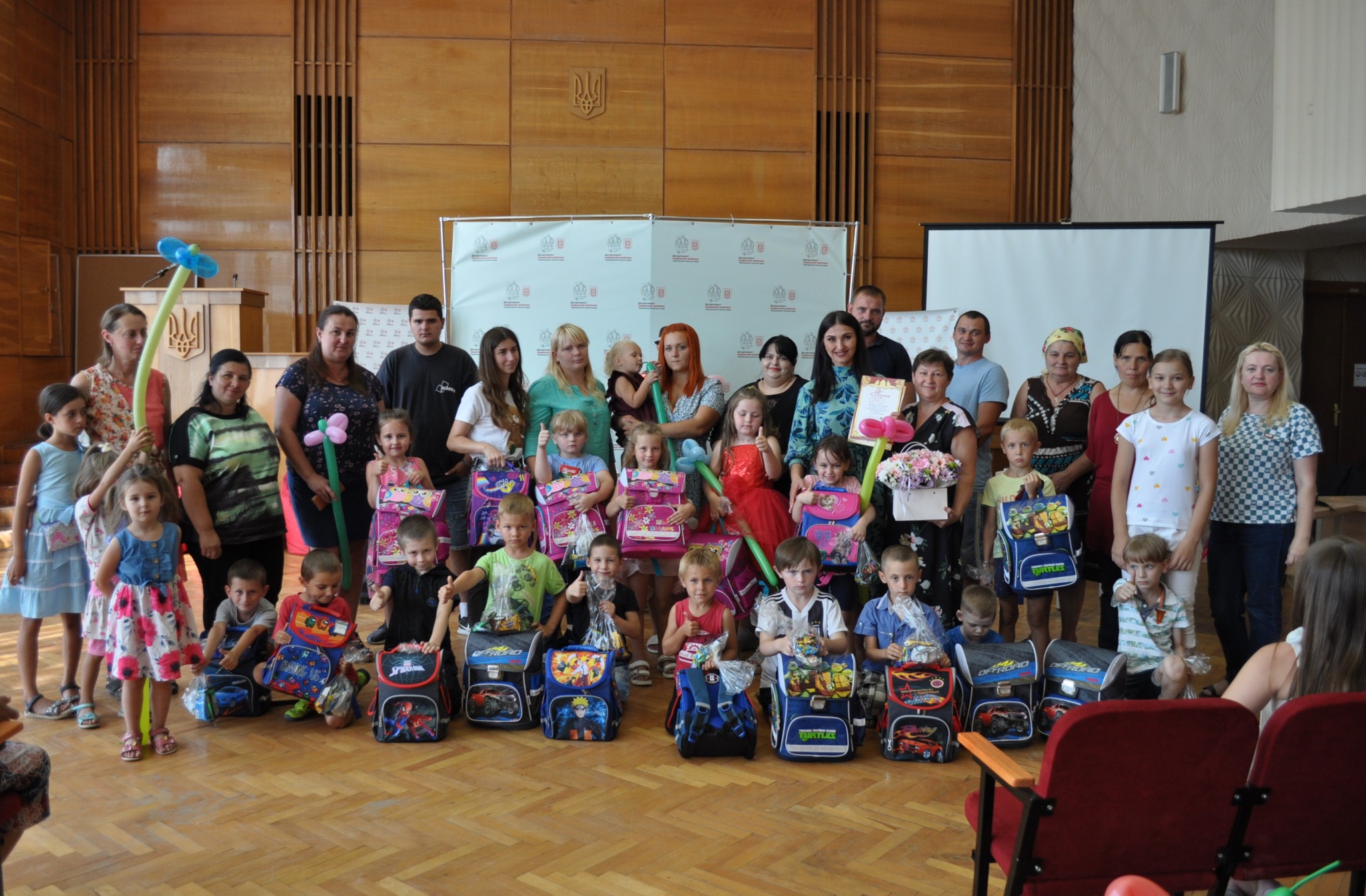 Діти з багатодітних родин напередодні Дня знань отримали шкільні заплічники. Кожен із них наповнений шкільним приладдям.