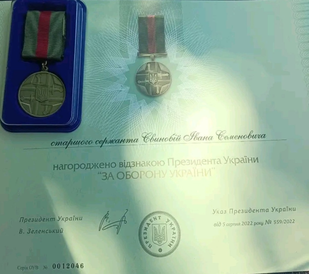 Нашого земляка Івана Семеновича Свинобоя нагороджено відзнакою Президента України «За оборону України»
