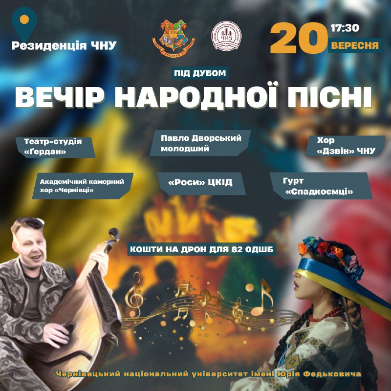 Вони запрошують шанувальників народної пісні, любителів поспівати у цікавій компанії та тих, хто хоче для себе відкрити красу української народної пісні. Захід розпочнеться о 17:30 у Резиденції ЧНУ під дубом.
