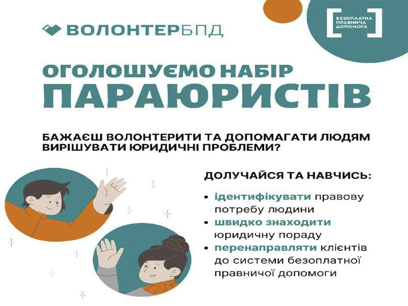 Система безоплатної правничої допомоги запрошує до співпраці параюристів!
