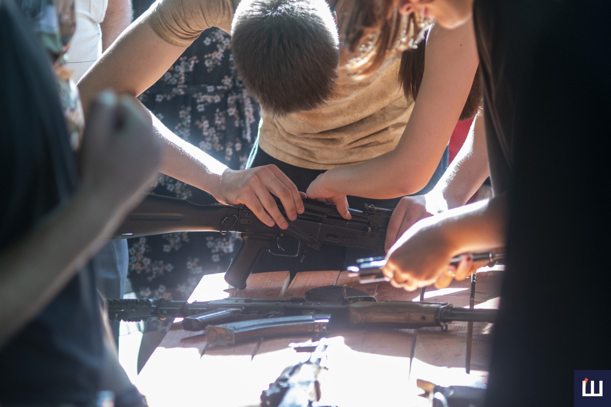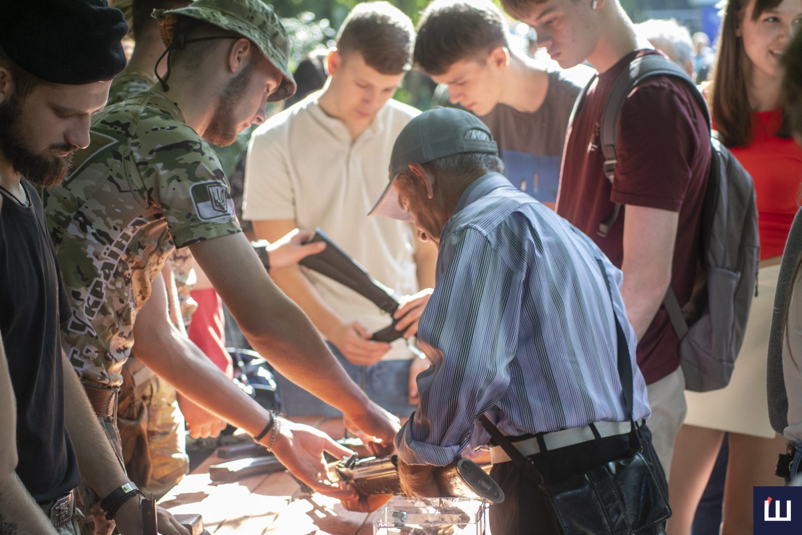 До заходу долучилися також представники всеукраїнської організації «Тризуб» імені Степана Бандери та «Правого сектора». Головний командир «Тризуба» Олег Микитюк розповідає, що основи домедичної допомоги та правил поводження зі стрілецькою зброєю є обов’язковими у сучасних реаліях. Цього відвідувачі могли навчитися з допомогою інструкторів на підготовлених зразках зброї.