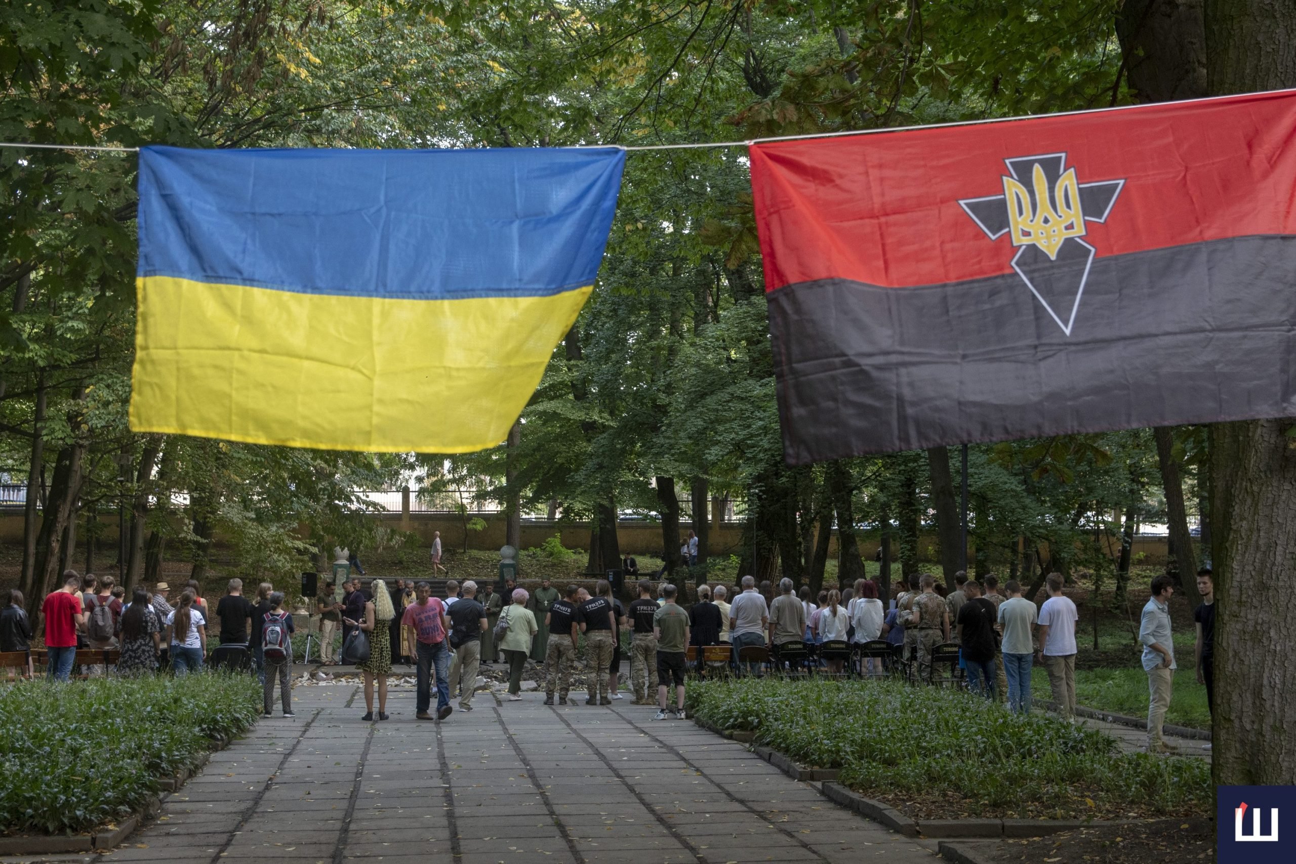 На відкритті Артпростору українського націоналізму у парку Шевченка відвідувачі могли заспівати повстанські пісні, навчитися користуватися стрілецькою зброєю та задонатити ЗСУ.
