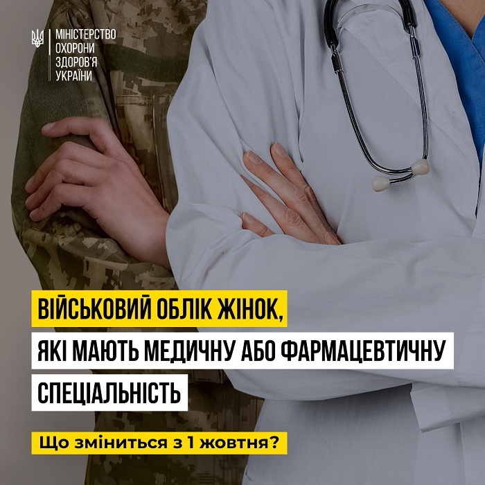 Військовий облік жінок, які мають медичну або фармацевтичну спеціальність. Що зміниться з 01 жовтня? – інформує Міністерство охорони здоров’я України