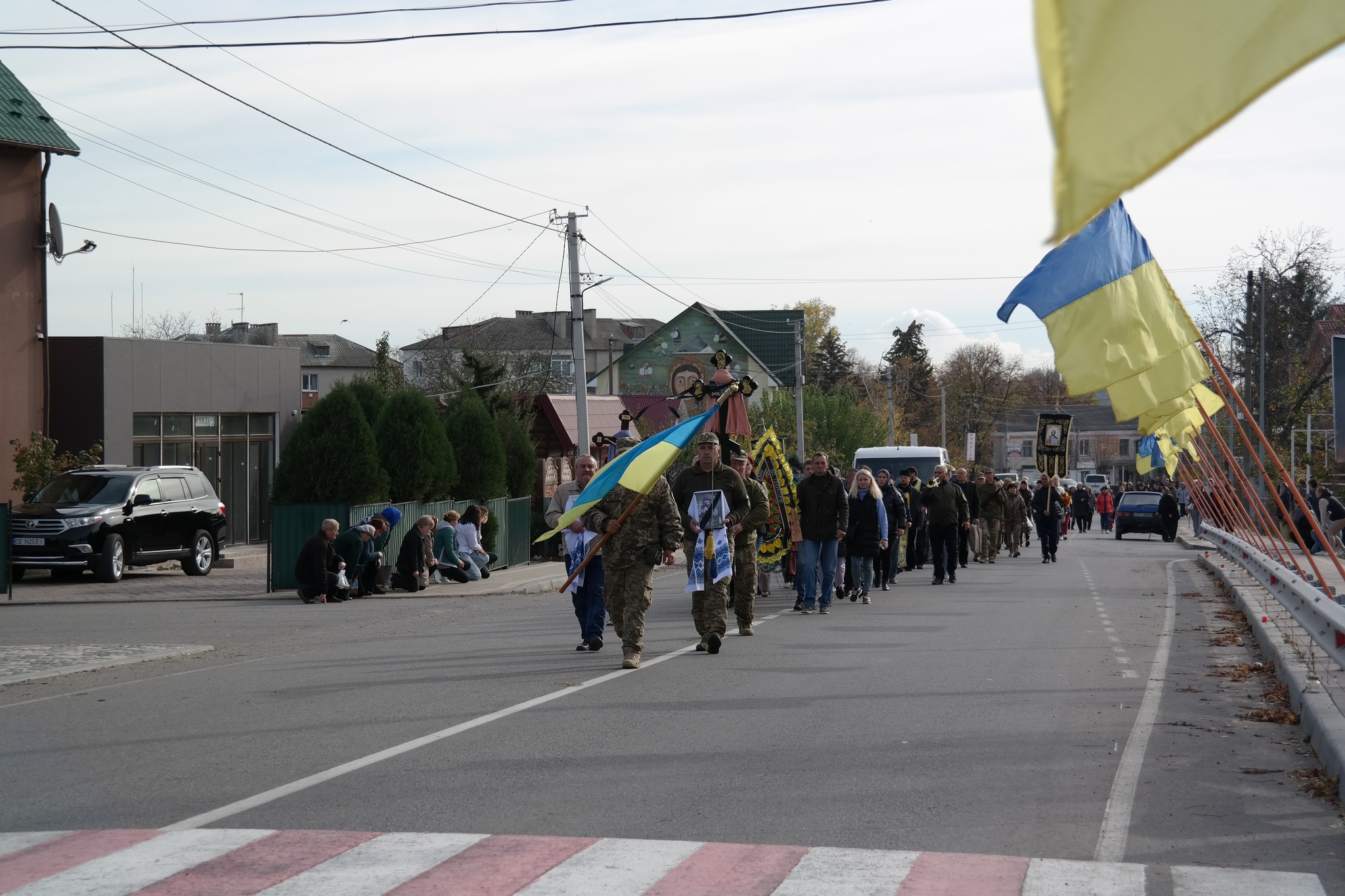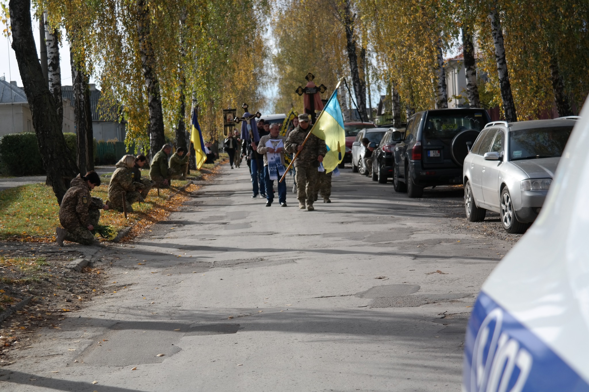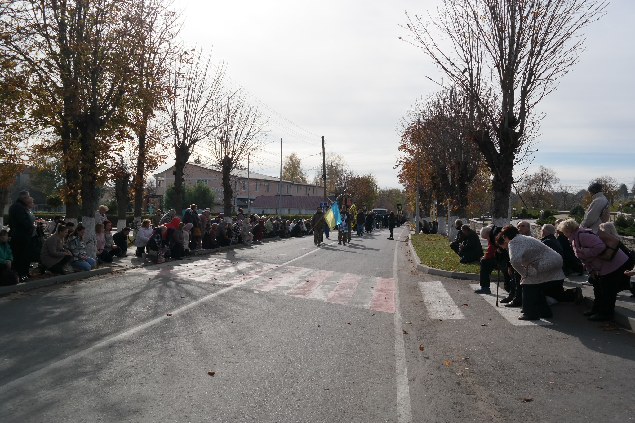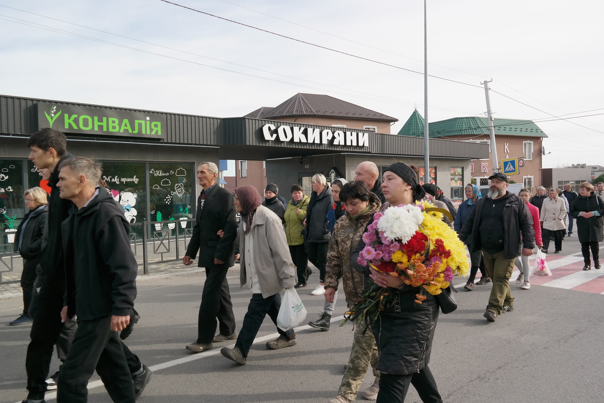 Спершу із воїном попрощались біля рідного дому, куди жителі Сокирян провели Героя навколішки…