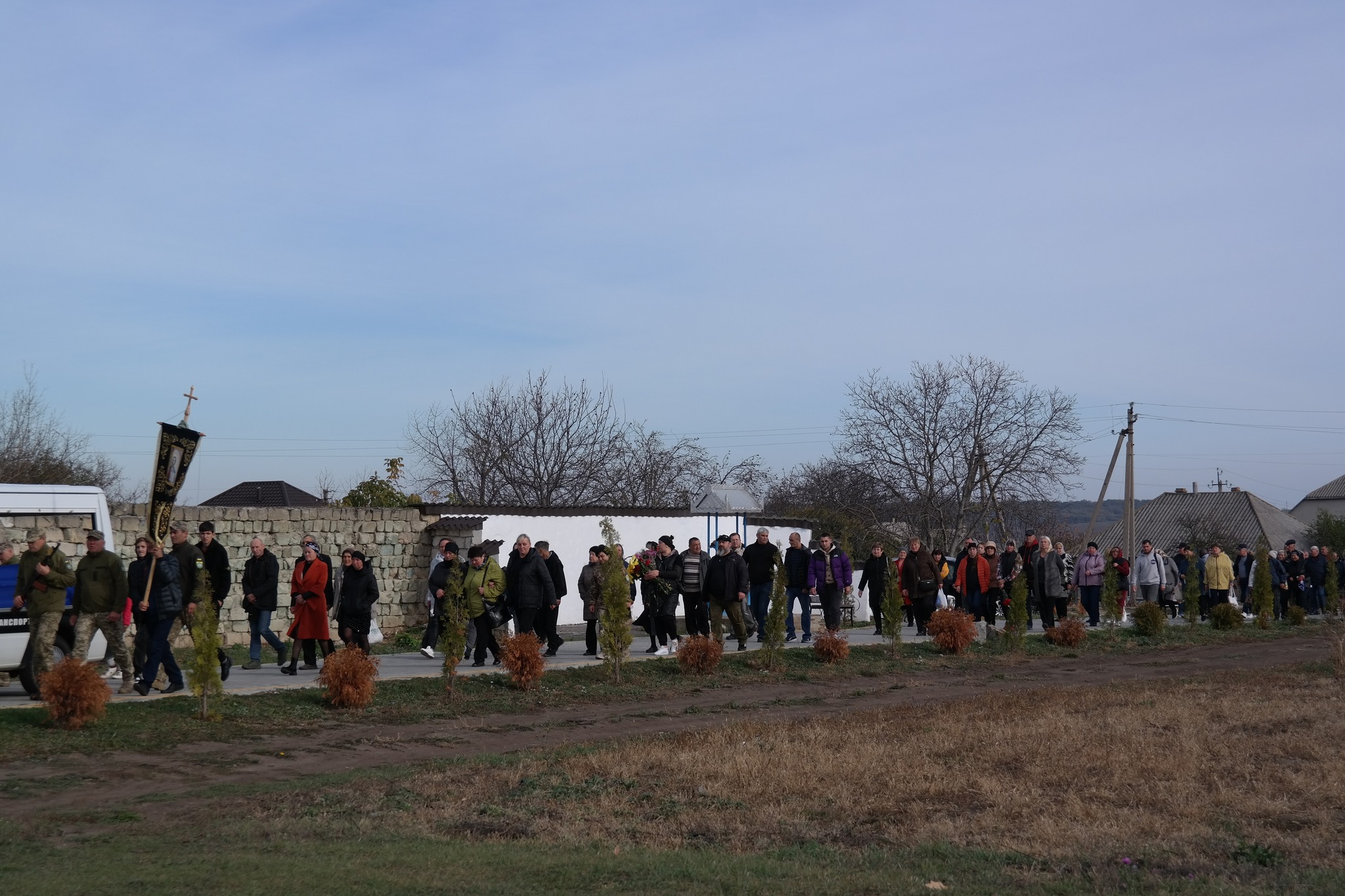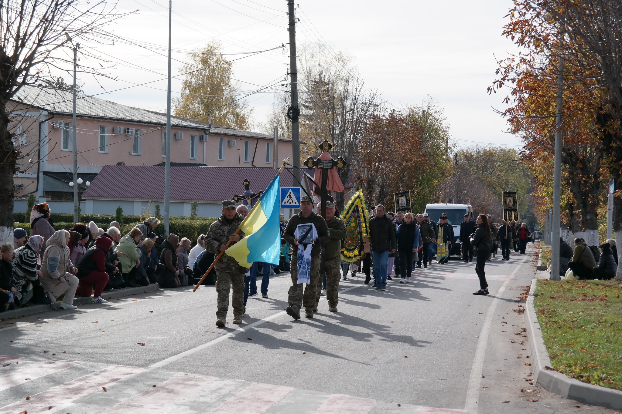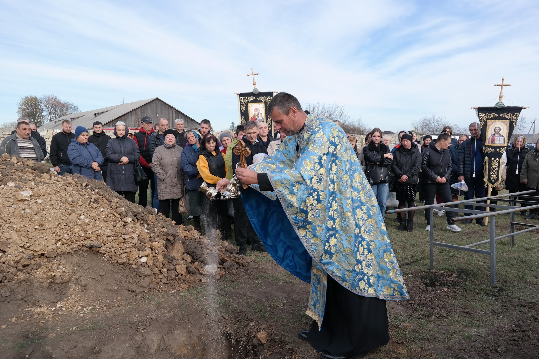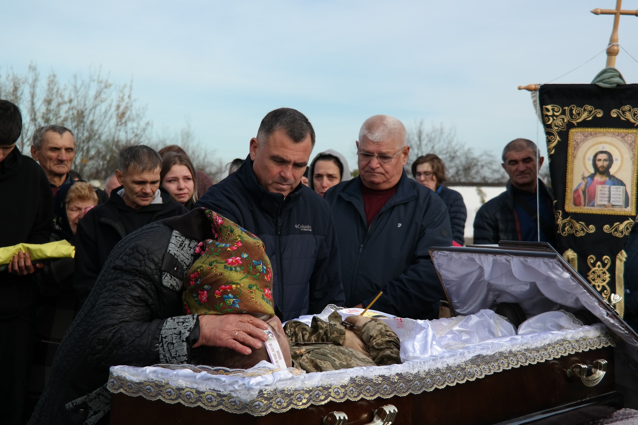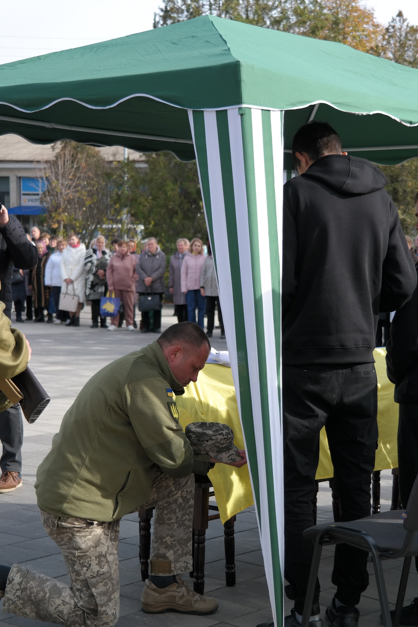 Спершу із воїном попрощались біля рідного дому, куди жителі Сокирян провели Героя навколішки…