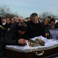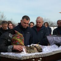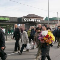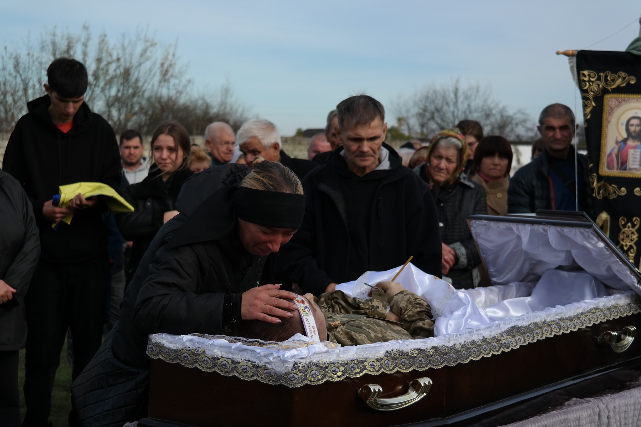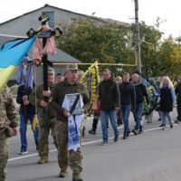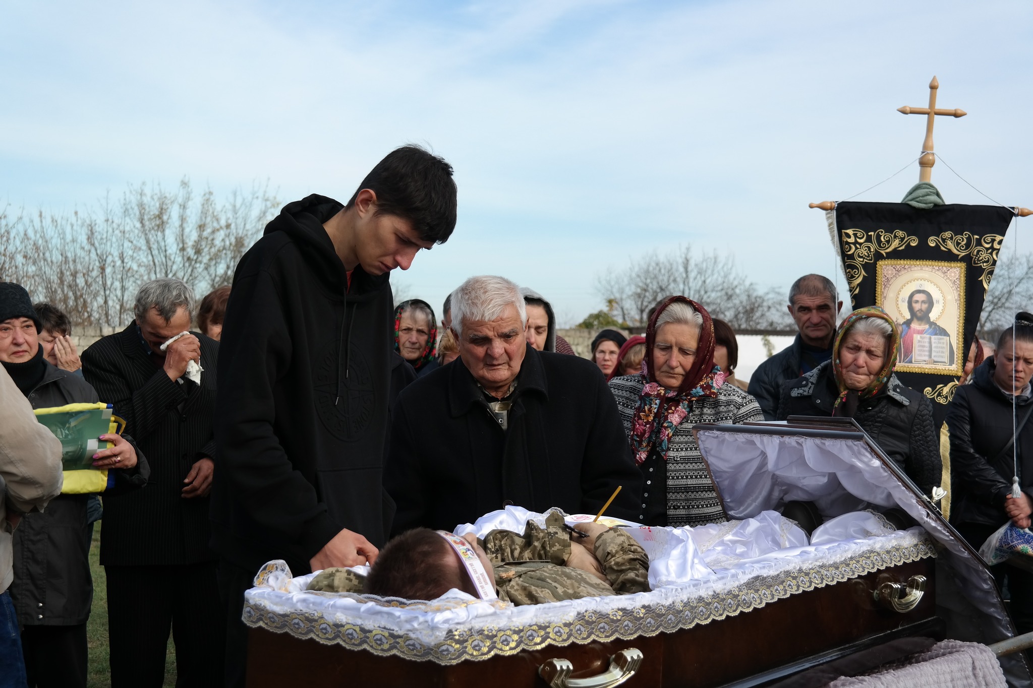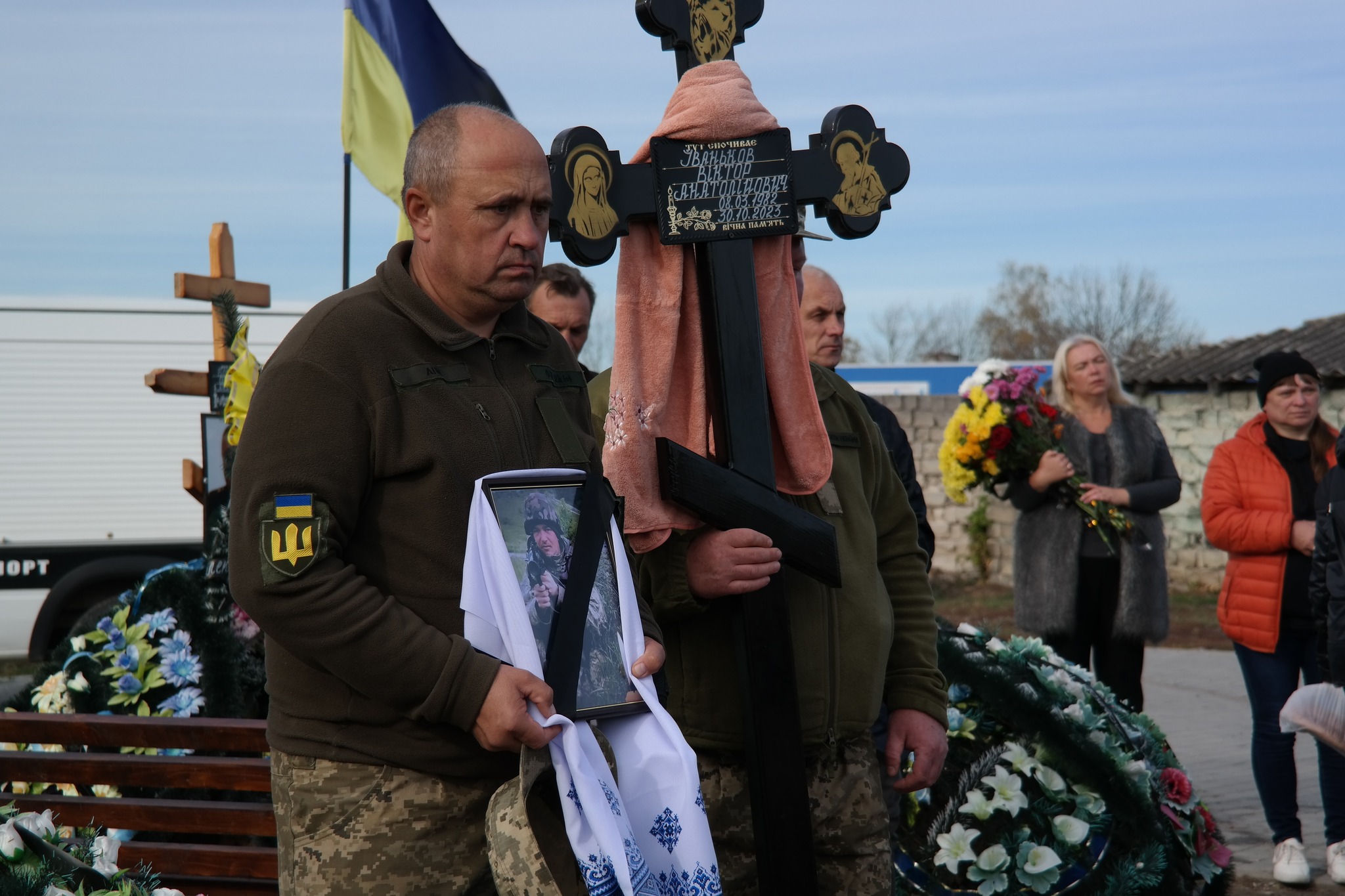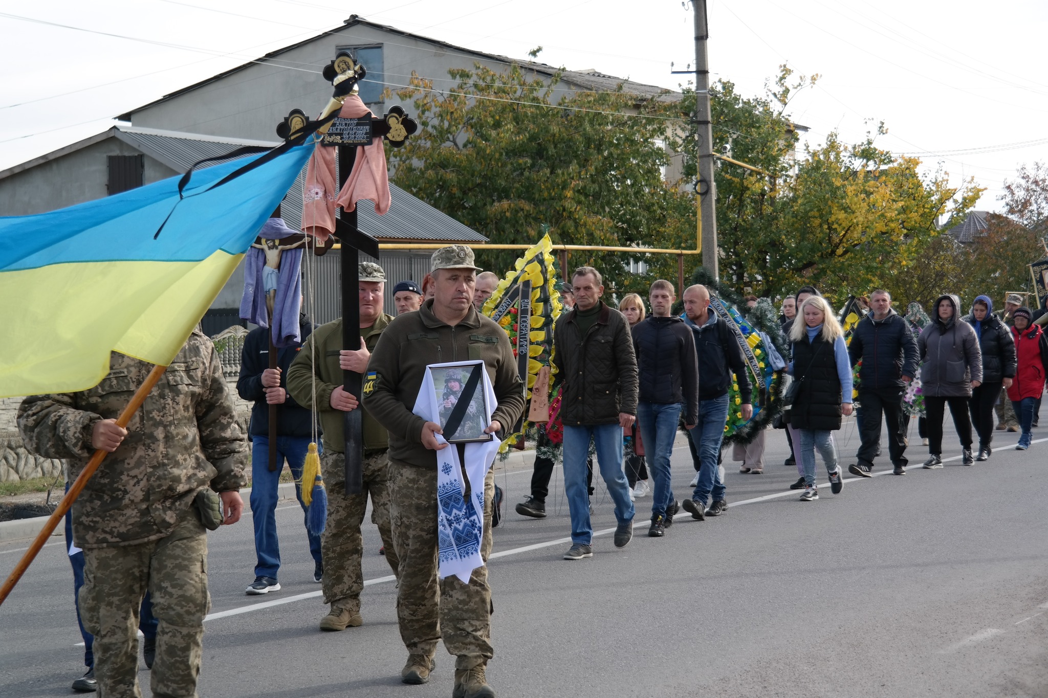 Спершу із воїном попрощались біля рідного дому, куди жителі Сокирян провели Героя навколішки…