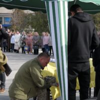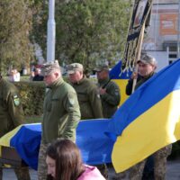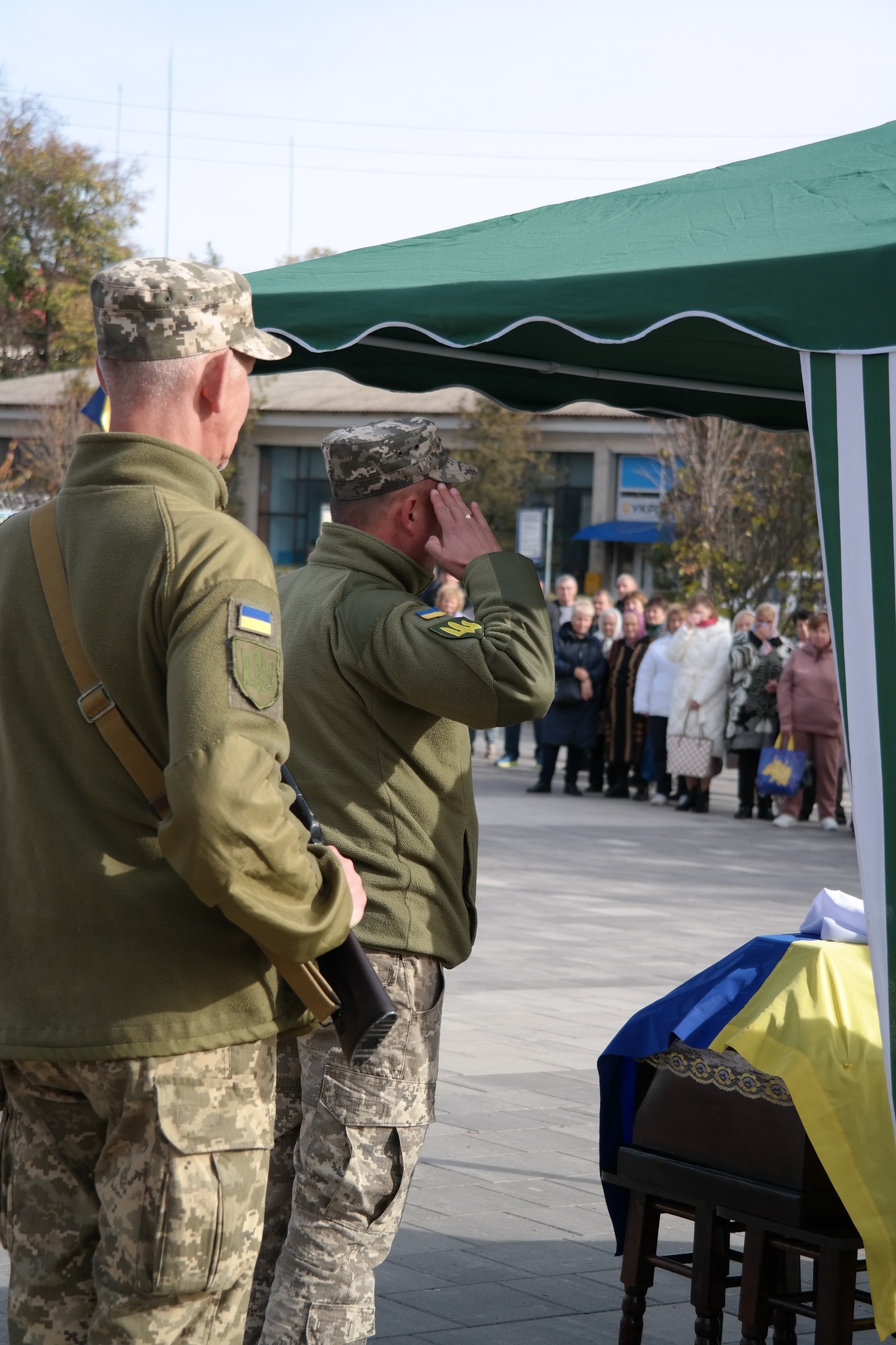 На території Меморіального комплексу відбувся міський траурний мітинг за полеглим бійцем, де зібрались рідні, близькі, друзі, побратими, сусіди, однокласники, представники місцевої влади та Другого відділу Дністровського РТЦК та СП, духовенство, освітяни, учні та громадськість.
