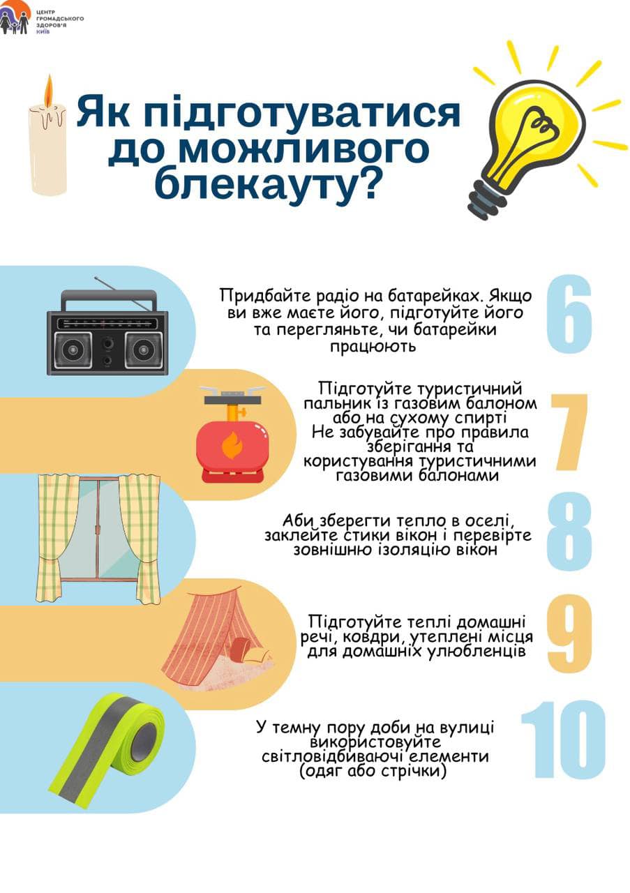 Аби пережити ці тяжкі моменти, полегшити їх, нагадуємо, що потрібно мати та як підготуватися до можливих блекаутів: