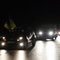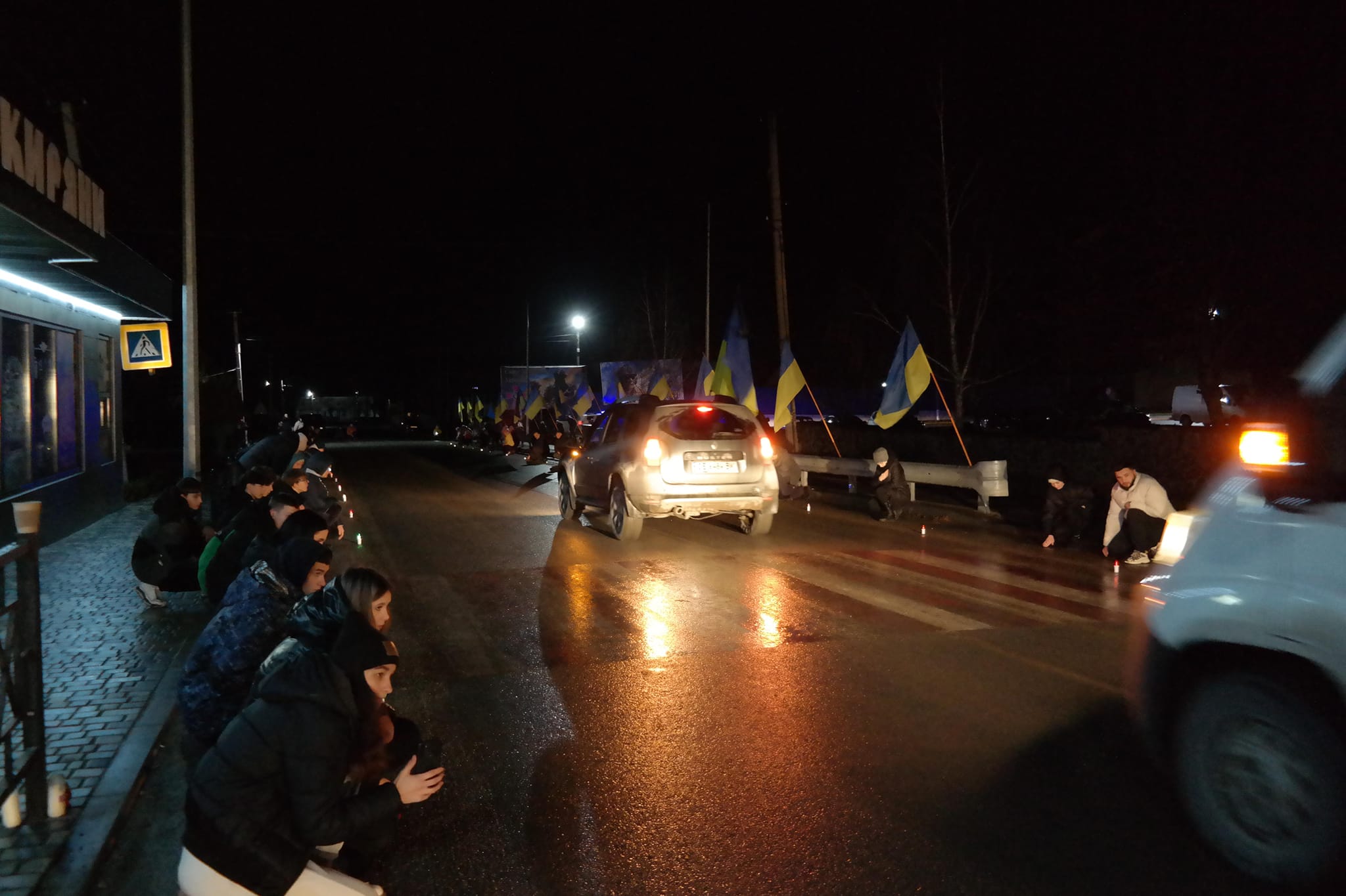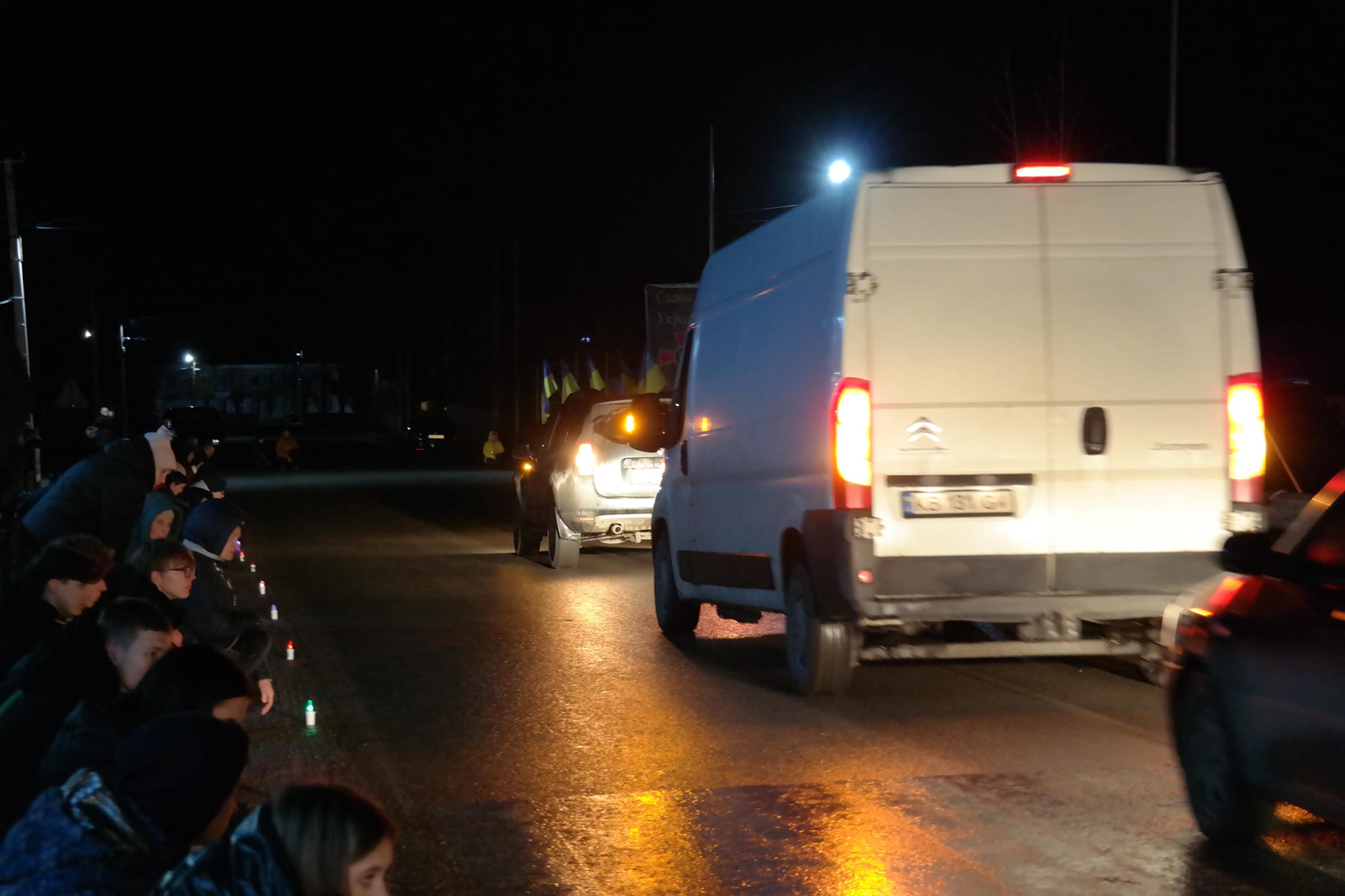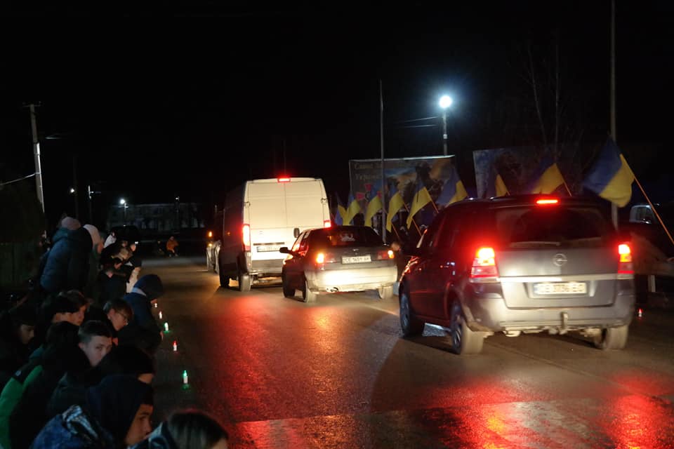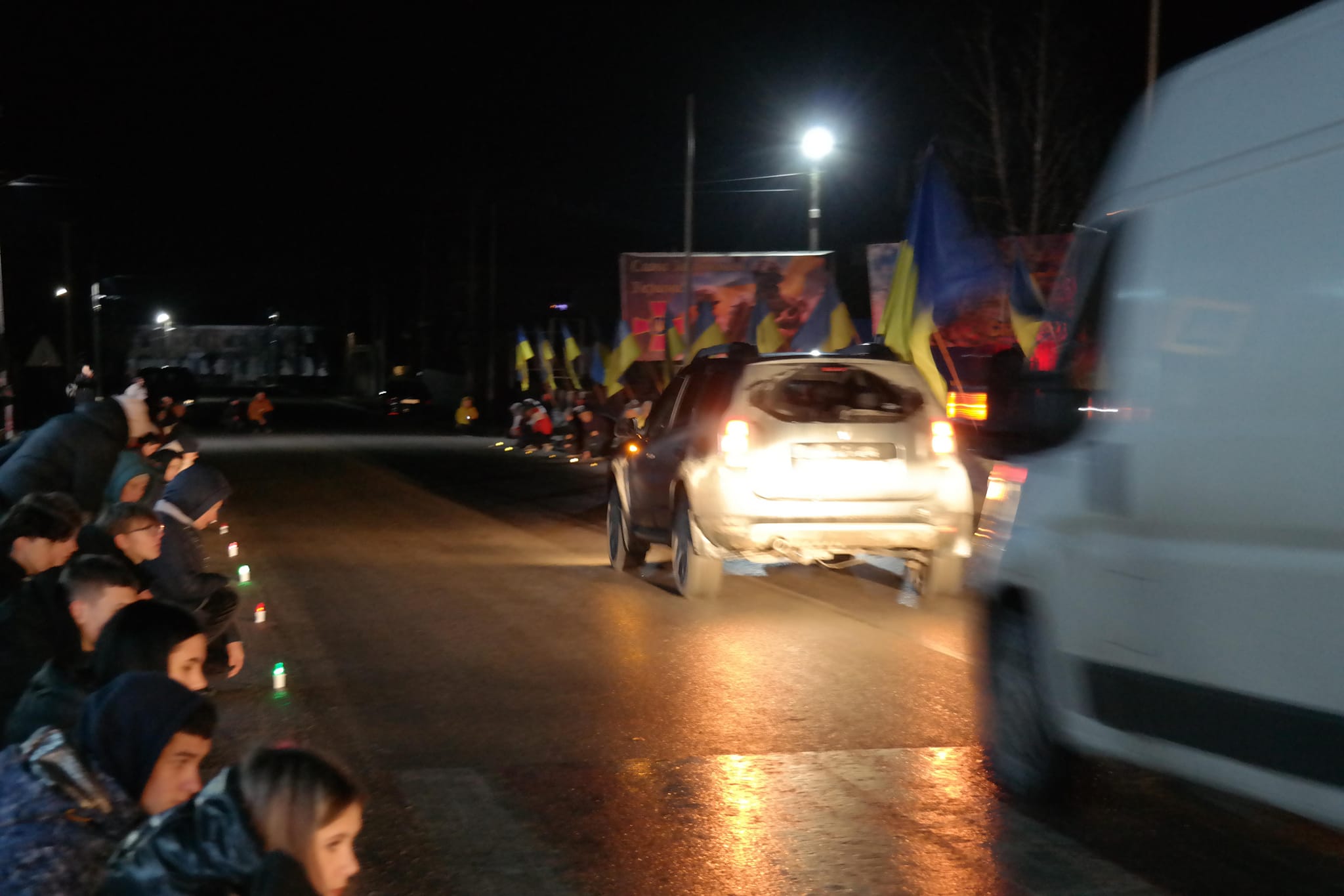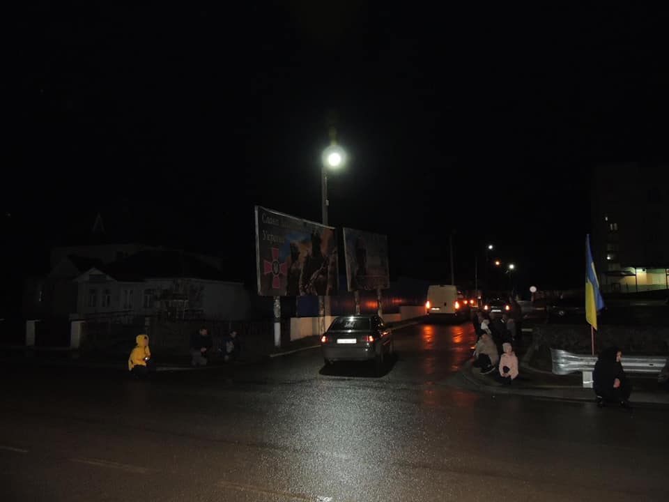 Жителі громади зустріли воїна на колінах… З національною символікою та лампадками…