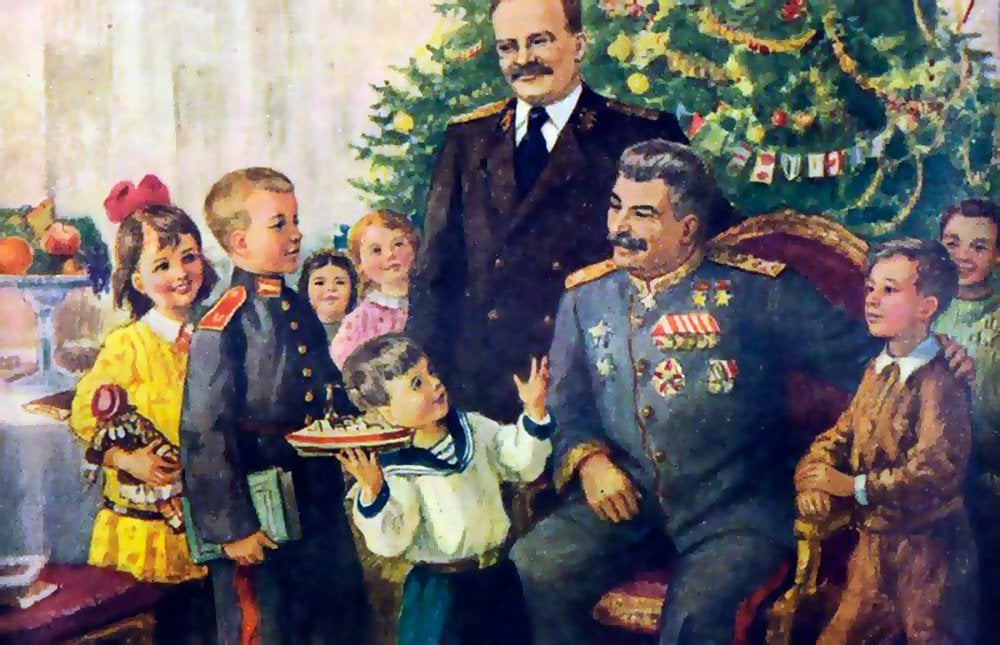 Радянська пропаганда робила все для популяризації новоствореного свята: на простій ялинці красувалися іграшки з серпом та молотом. Спочатку були навіть іграшки зі Сталіним, Леніним, червоного кольору, що символізувало червоноармійців.