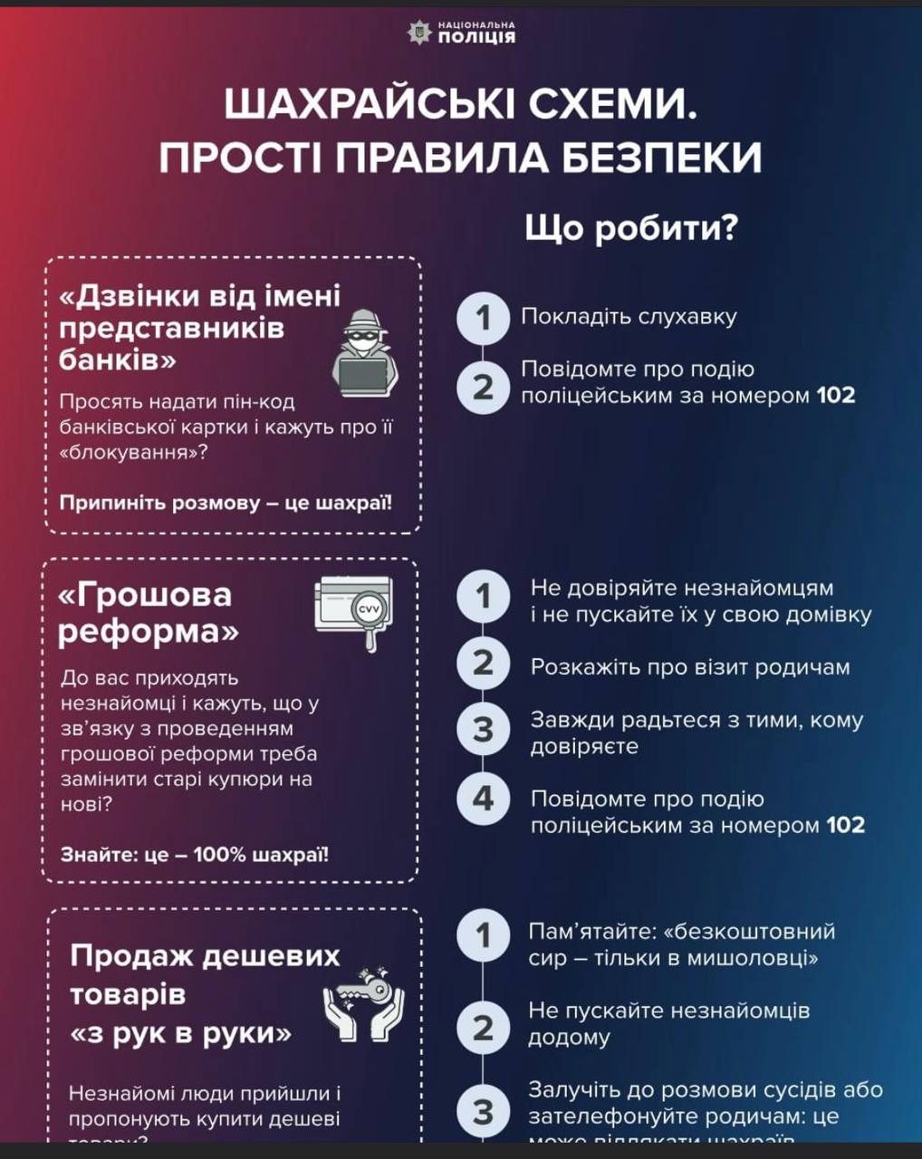 Якщо ви все ж таки потрапили до пастки аферистів – одразу телефонуйте на спецлінію «102».
