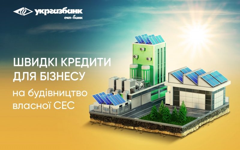 Українські підприємці мікро- та малого бізнесу можуть швидко і просто отримати кредит в Укргазбанку на будівництво сонячних електростанцій потужністю до 150 кВт для власного споживання. Банк спростив процедуру надання кредиту. Рішення щодо можливості кредитування можна отримати за прискореною процедурою – протягом 2 тижнів за спрощеним пакетом документів.