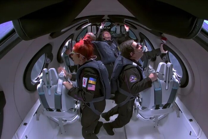 Ліна Бороздіна та ще три приватні туристи вирушили на орбіту Землі о 10:00 за східноєвропейським часом, а повернулася на космодром о 10:54. На фото, яке опублікувала компанія Virgin Galactic, видно непідробні емоції астронавтів.
