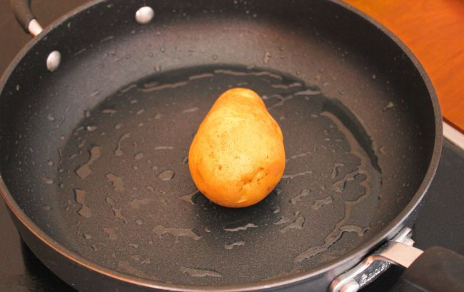 Для того, щоб до сковорідки нічого не прилипало, нам потрібно розігріти її до правильної температури. Бо без цього нічого не вийде.