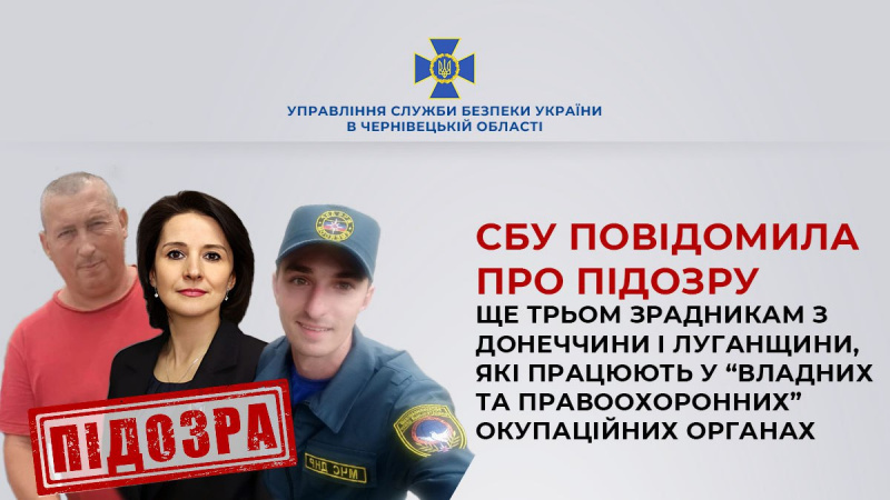 СБУ з Чернівців повідомила про підозру ще трьом зрадникам і колаборантам з Донеччини та Луганщини