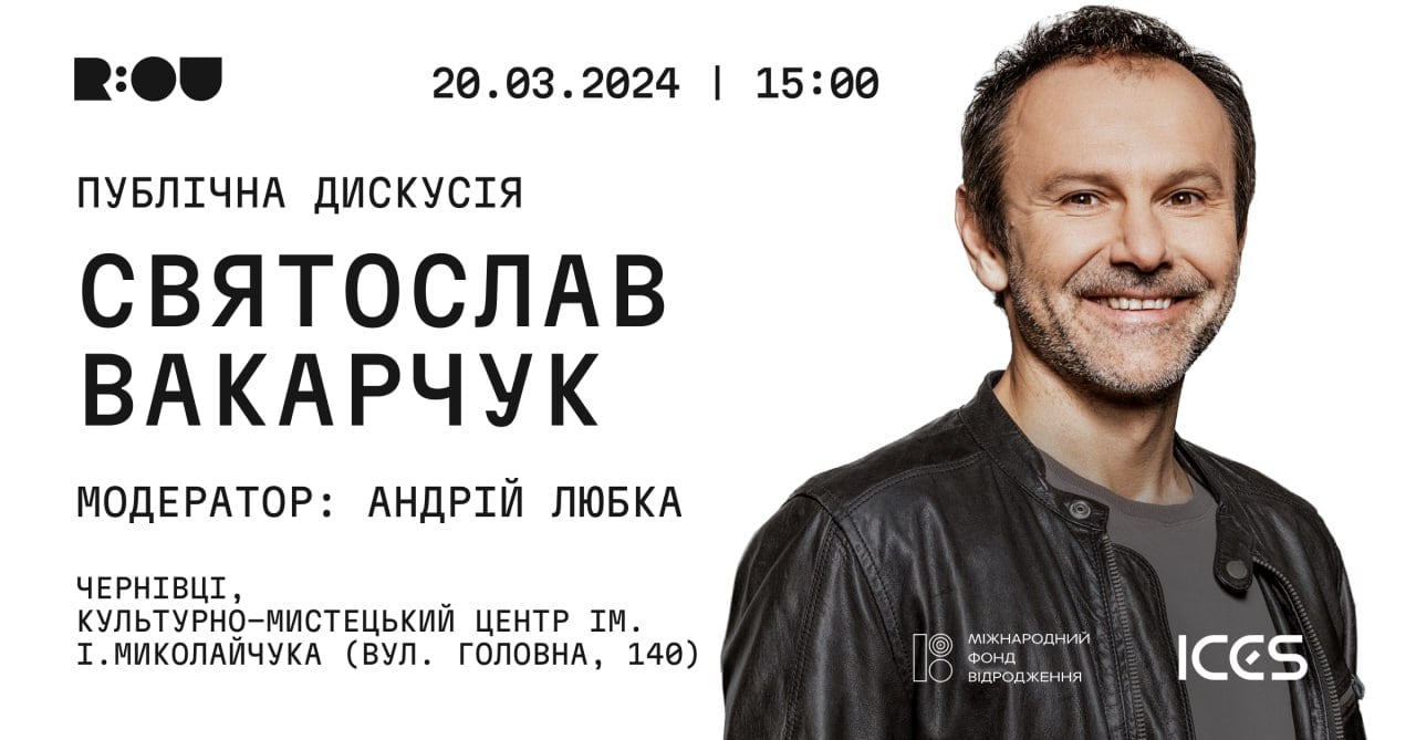 У Чернівцях 20 березня відбудеться публічна дискусія з культовим музикантом і громадським діячем Святославом Вакарчуком.