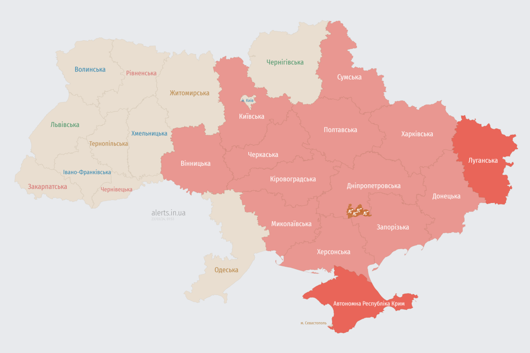 У східних та центральних областях була оголошена загроза застосування ворогом балістичного озброєння.