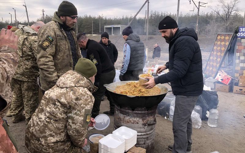 “Деякі заготовки робимо вдома: м’ясо морозимо, тремо моркву, тільки 200 кілограмів йде на салат, а ще її додаємо в плов. Салат привозимо вже готовий. Виїжджаємо в четвер або п’ятницю, ночуємо, а в суботу вранці вже виїжджаємо на наші місця. Там розпалюємо вогонь і починаємо готувати. Якщо хлопці приїжджають раніше, то, поки вони чекають, поки ми приготуємо, пригощаємо їх бутербродами та кавою”, – говорить волонтер.