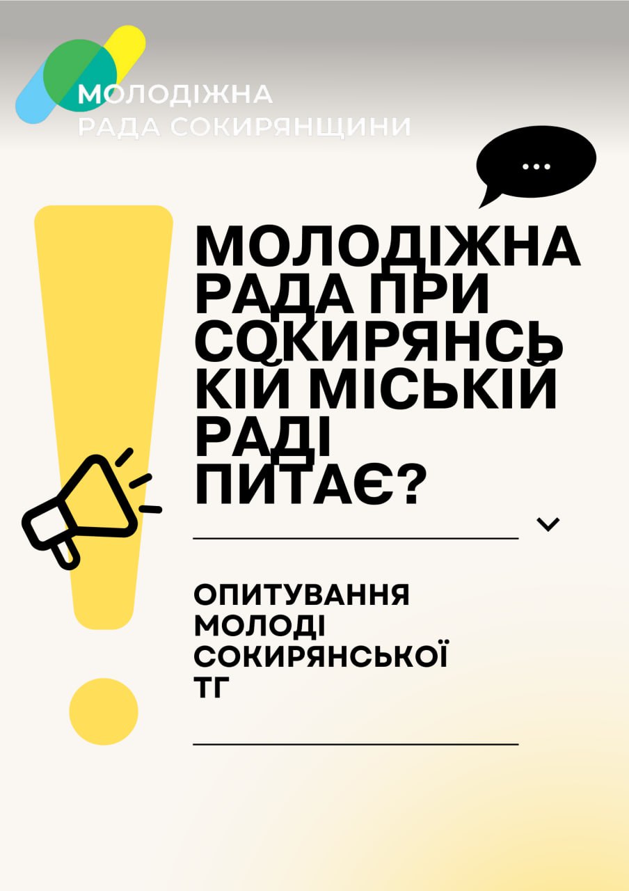 Молодіжна рада при Сокирянській міській раді закликає молодь пройти опитування задля удосконалення та розвитку молодіжної політики у Сокирянській міській територіальній громаді.