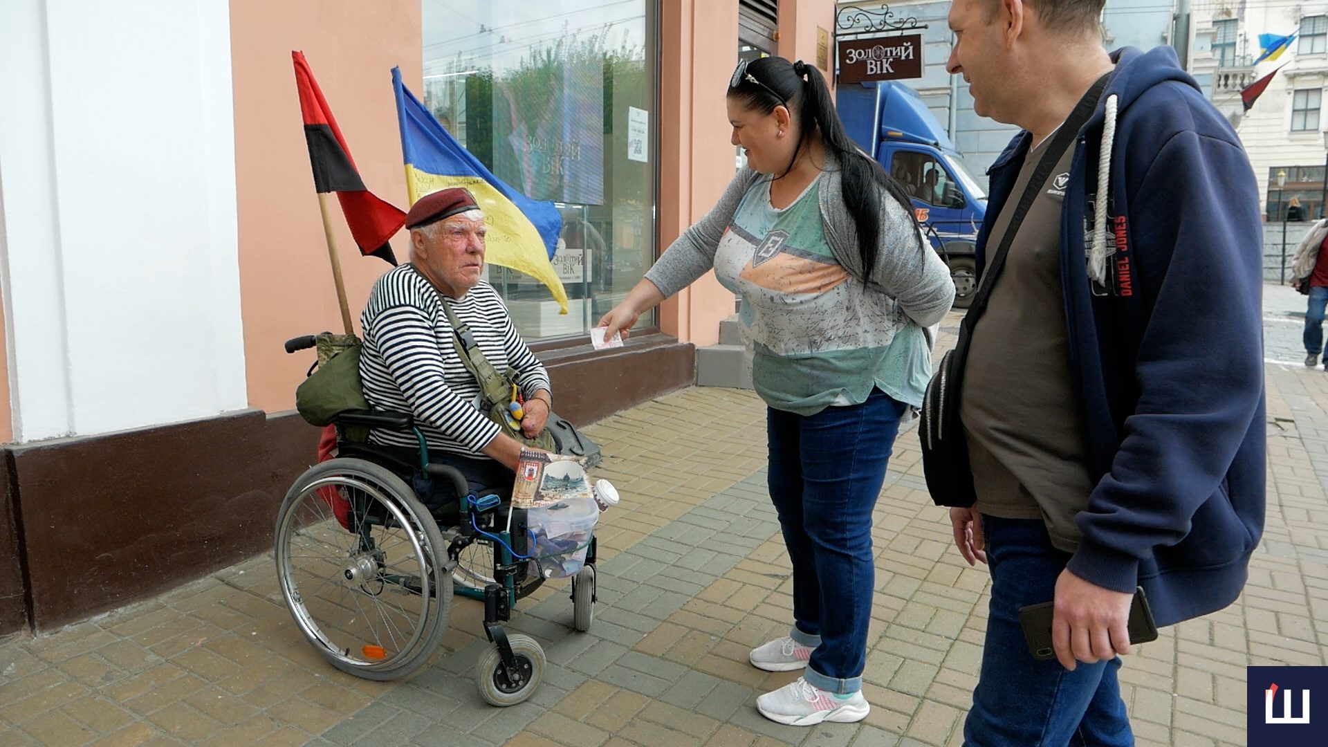 77-річний Григорій Янченко – волонтер-десантник, що за час повномасштабного вторгнення зібрав для ЗСУ майже 4 мільйони гривень. Чоловік пересувається на кріслі колісному, бо не має обох ніг. Ще після служби у радянській армії втратив їх та пальці на руках.