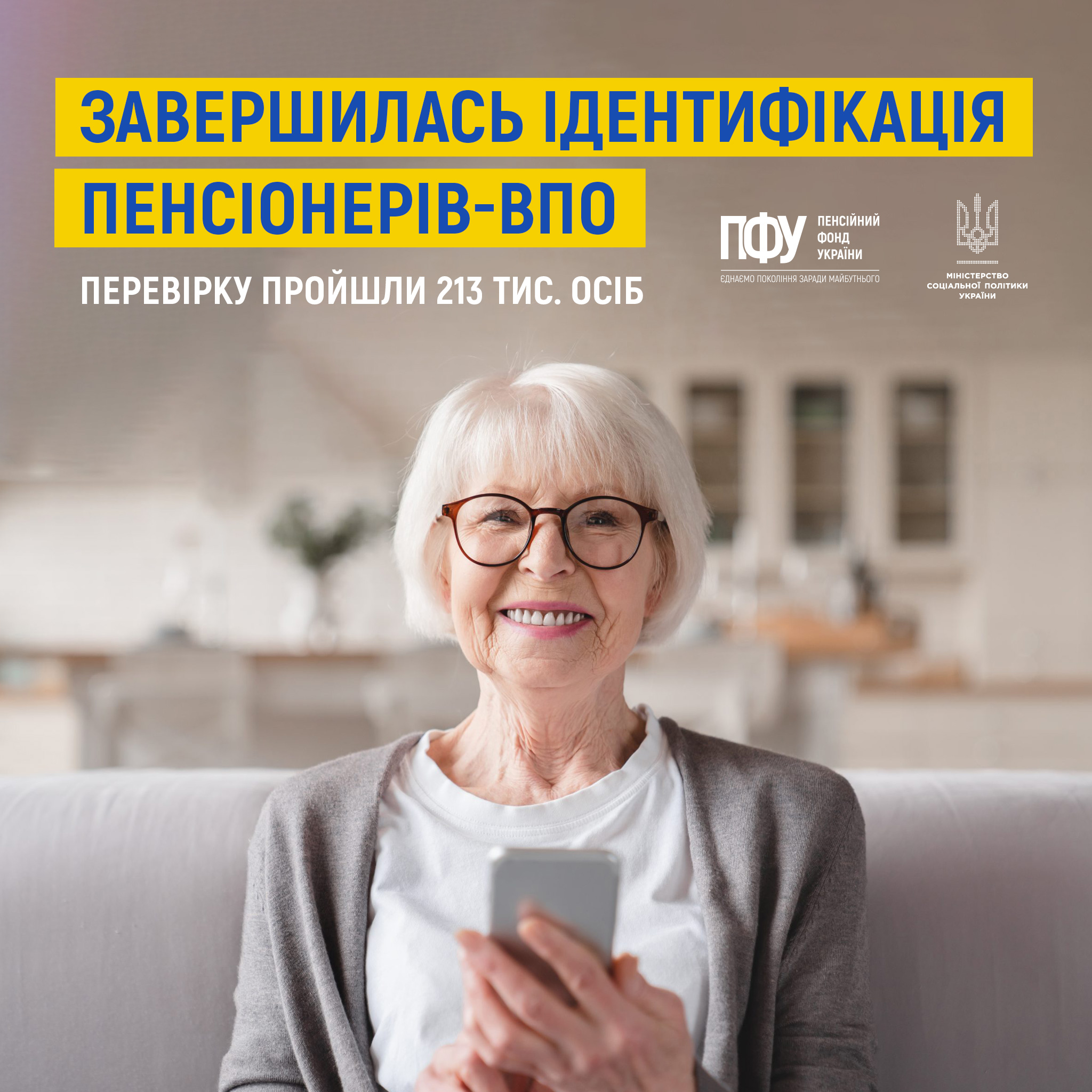 Майже 213 тис. пенсіонерів-переселенців, які стали внутрішньо переміщеними особами ДО початку повномасштабної війни, успішно пройшли фізичну ідентифікацію – вони мали для цього 9 місяців.