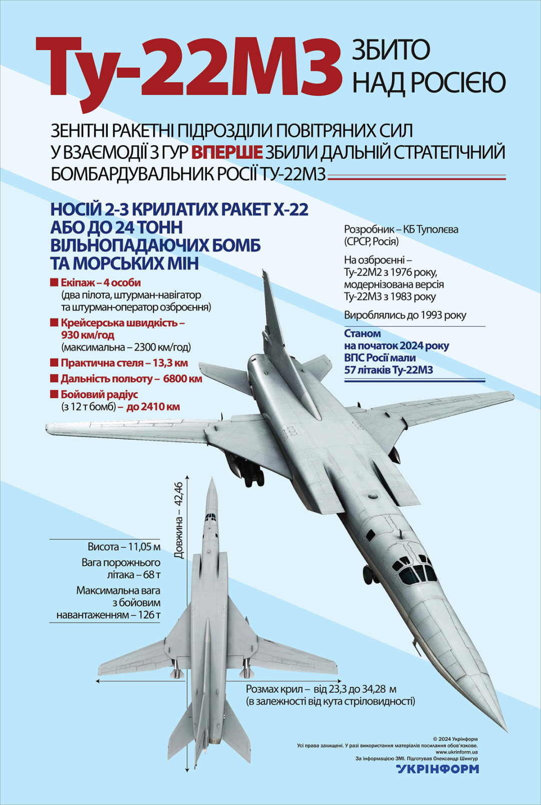 Зенітні ракетні підрозділи Повітряних сил у взаємодії з ГУР вперше збили дальній стратегічний бомбардувальник Росії Ту-22М3