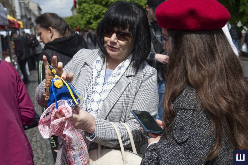 Наталія Коцур цього разу – відвідувачка ярмарки, хоча раніше також організовувала подібні ініціативи. Придбала собі ляльку-мотанку з банкою знизу, куди потрібно насипати зерно, аби в оселі був добробут. Каже, що залишилася задоволеною від покупки, адже тепер має подарунки на Великдень.