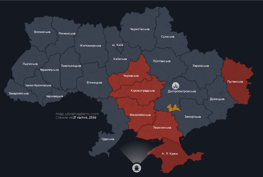 У низці областей України оголосили повітряну тривогу у зв'язку із загрозою застосування російськими військами балістичного озброєння.