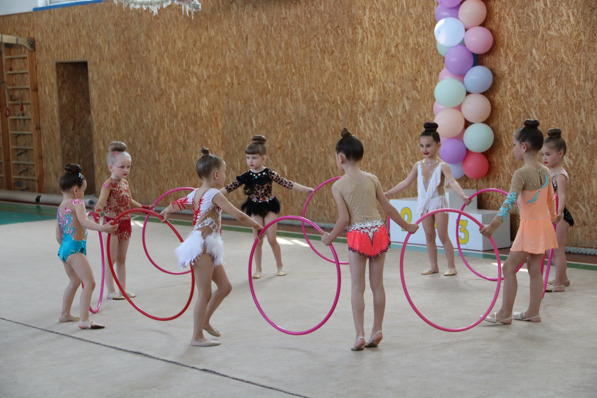 Юні гімнасти, відповідно до вікової категорії, виконували вправи без предмета, з обручем, м’ячем та скакалкою.