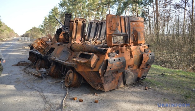 Також Сили оборони України знищили 7510 (+14) російських танків, бойових броньованих машин ‒ 14508 (+48), артилерійських систем – 12538 (+23), РСЗВ – 1070 (+0), засобів ППО ‒ 798 (+0), літаків – 351 (+0), гелікоптерів – 325 (+0), БПЛА оперативно-тактичного рівня – 10015 (+30), крилатих ракет ‒ 2199 (+2), кораблів / катерів ‒ 26 (+0), підводних човнів – 1 (+0), автомобільної техніки та автоцистерн – 16955 (+48), спеціальної техніки ‒ 2061 (+7).