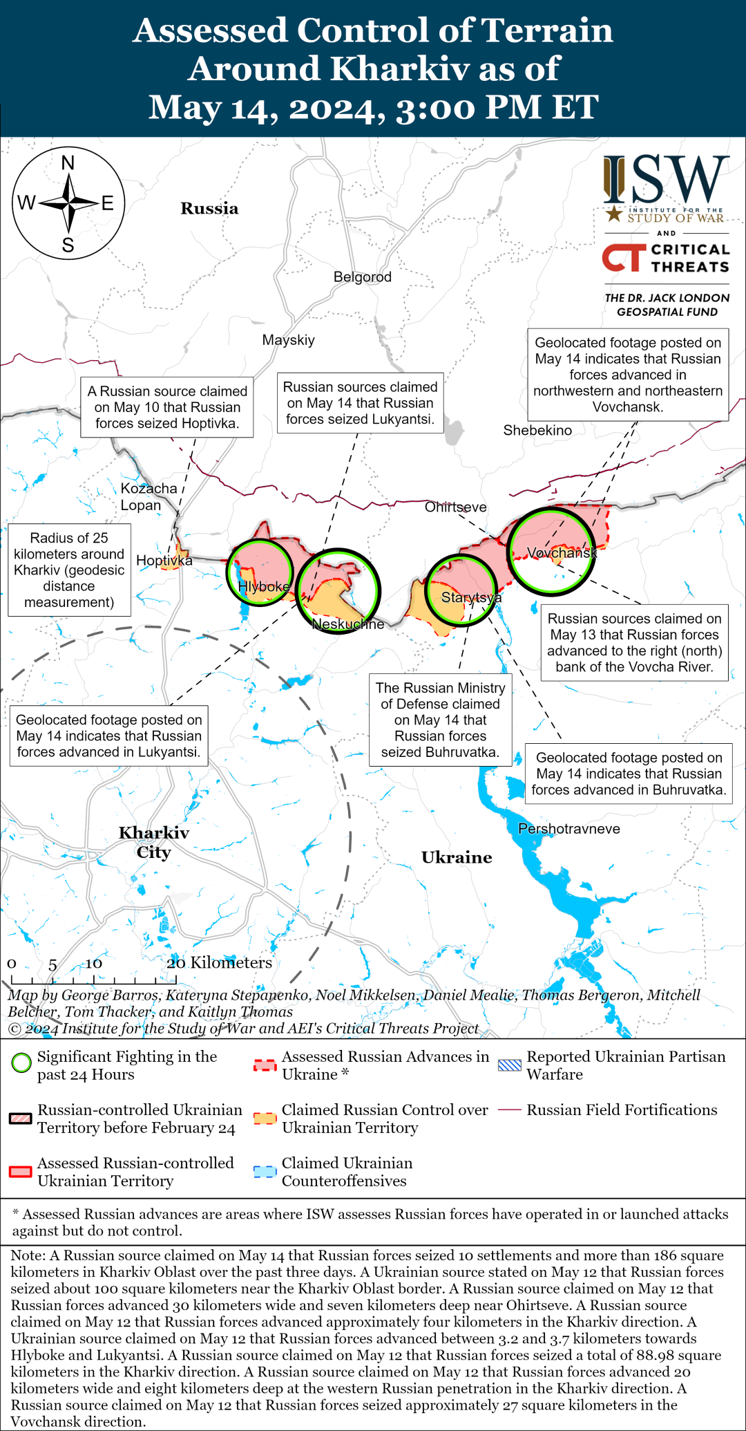 Зазначається, що характер російської наступальної активності в цьому районі відповідає оцінці ISW, що російські війська надають перевагу створенню «буферної зони» в районі міжнародного кордону, а не більш глибокому просуванню в Харківську область.