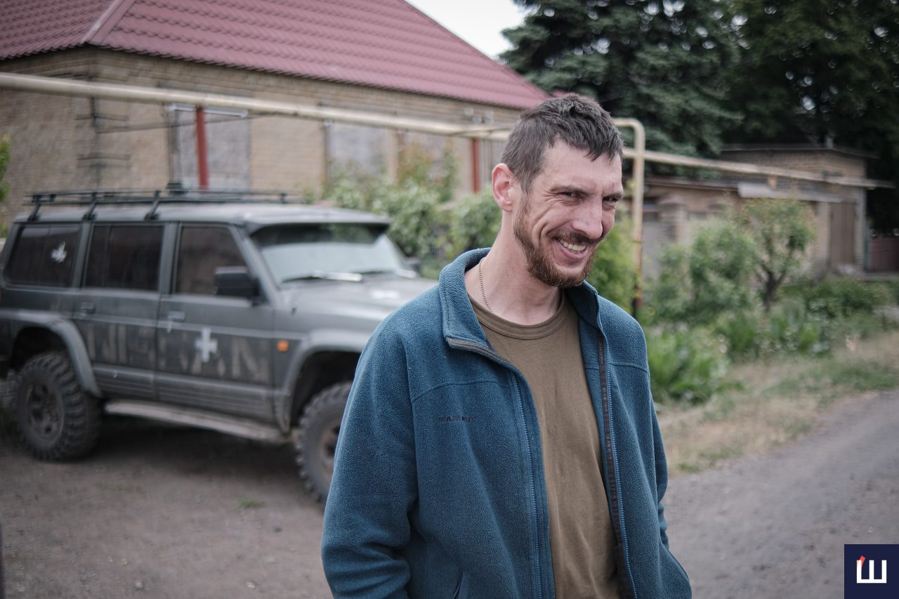 Отож, поїздка. Дорогою заїжджаємо до земляка — відомого лікаря з Чернівців Андрія Аносова. Він із початком повномасштабної війни служить у медичному підрозділі, який надає першу допомогу важким пораненим та доправляє їх до шпиталю. Аносов на війні вже вдруге: у 2015-2016 роках лікар Чернівецької обласної клінічної лікарні служив у зоні АТО. Передаємо засоби гігієни та медичне спорядження. Аносов запрошує нас на сніданок. А потім, як і зазвичай, показує своє робоче місце.