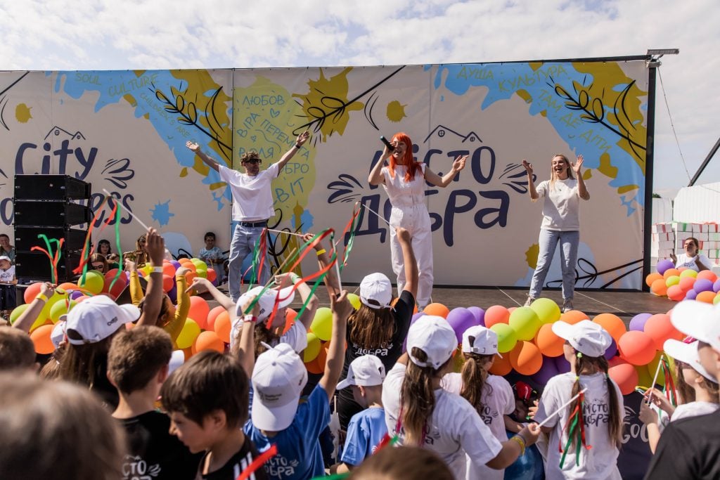 На святі також презентували новий гімн «Міста добра». Пісню подарувала діткам Світлана Тарабарова, яка стана новою амбасадоркою волонтерського містечка.