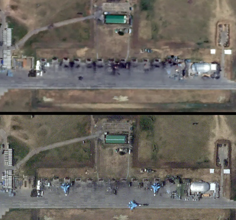 Супутникові знімки, отримані від компанії Planet Labs, підтвердили ураження військового аеродрому в Морозовську Ростовської області РФ у результаті атаки українських безпілотників.