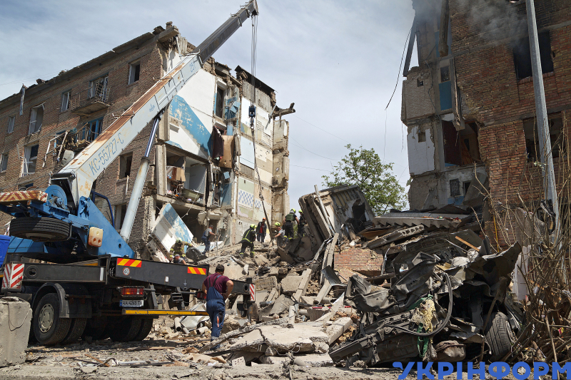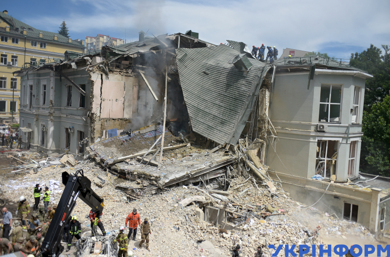 08.07/ Наслідки російського ракетного обстрілу будівлі у Солом`янському районі Києва