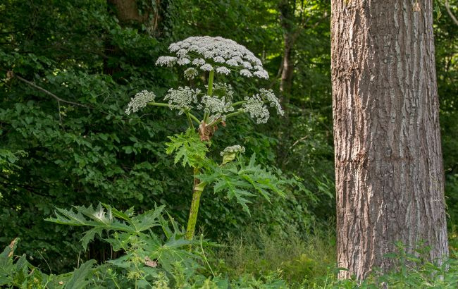 Борщівник — це така велика рослина з великими листками та білими квітами. Рослина дуже красива, але вкрай небезпечна.