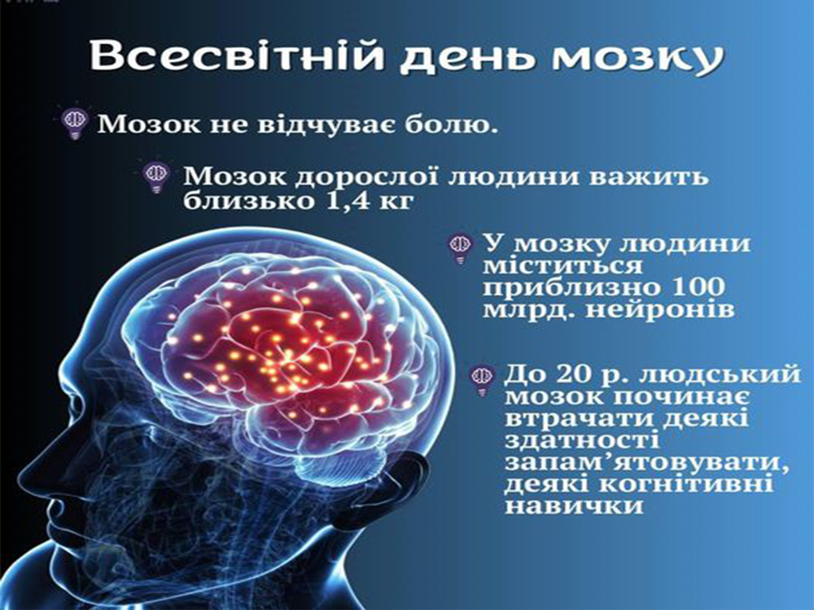 Із загальної кількості крові та кисню в нашому організмі, мозок отримує 20%.