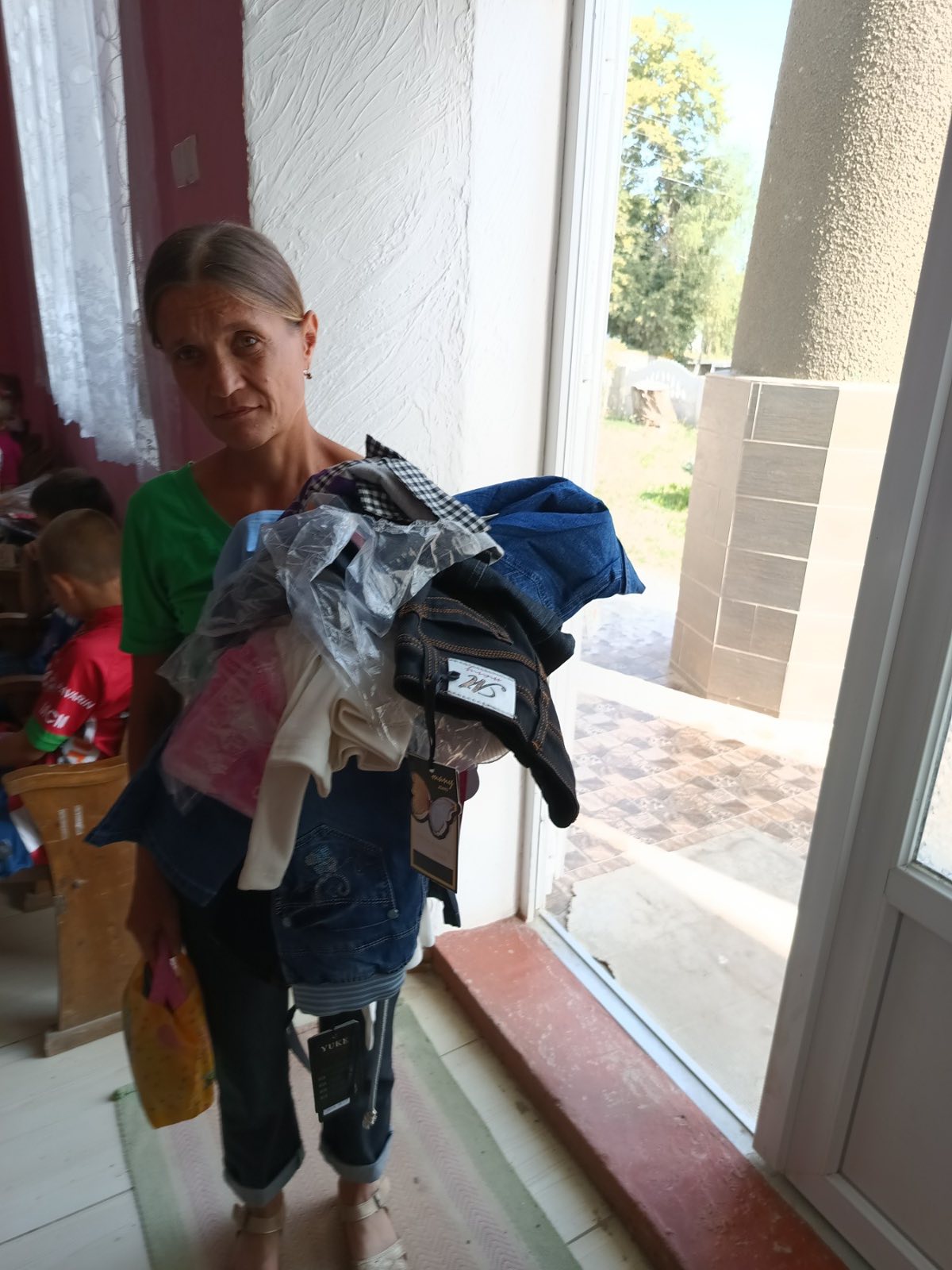 Спільними зусиллями земляки, які наразі проживають в обласному центрі, надали для юних жителів села різновіковий одяг, який діти вже встигли й приміряти.