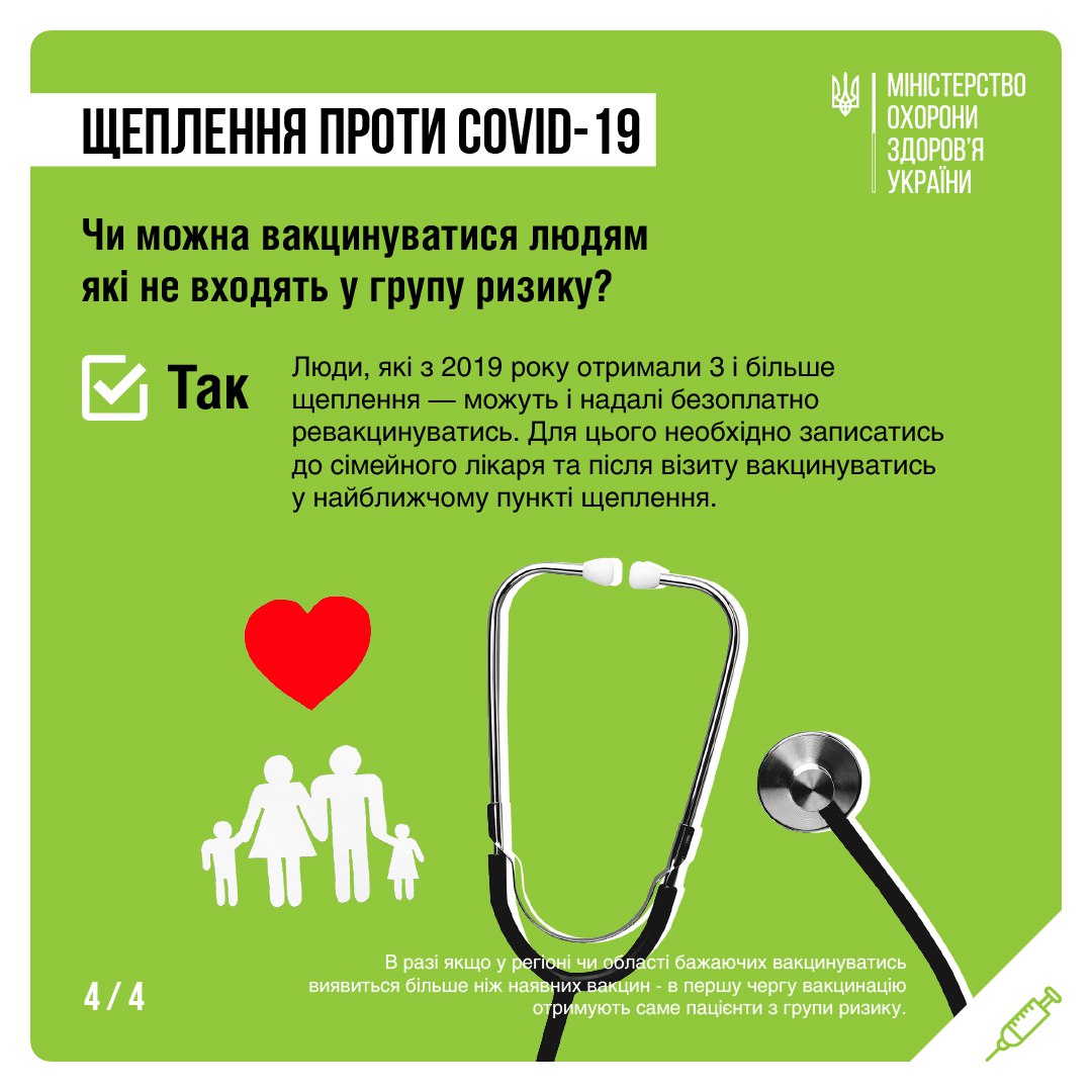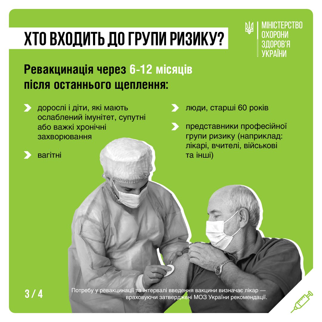 3.Ревакцинацію рекомендовано робити через 6-12 місяців не усім, а людям із груп ризику: