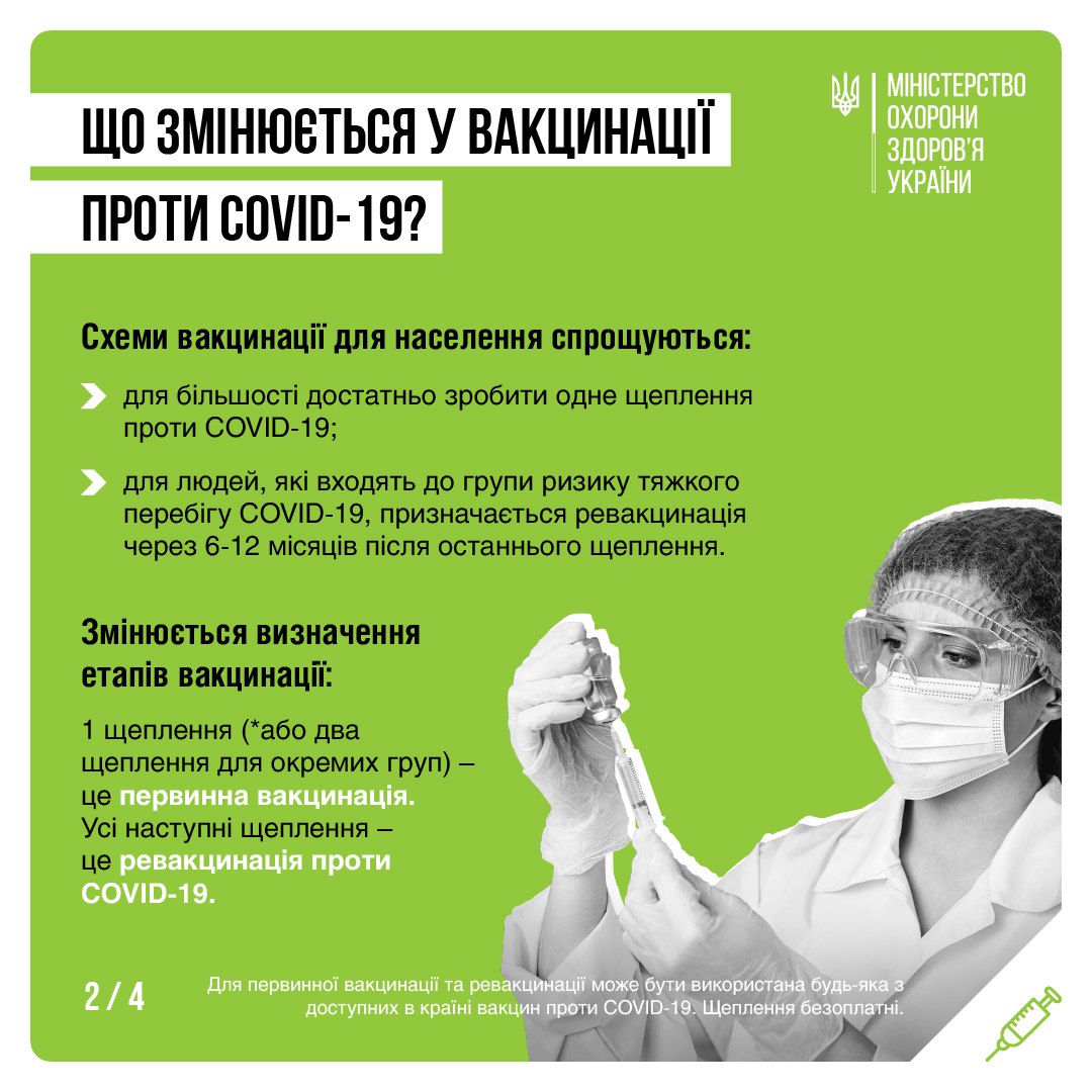1.Схеми вакцинації для населення спрощуються: для більшості людей достатньо зробити одне щеплення проти СОVID-19.