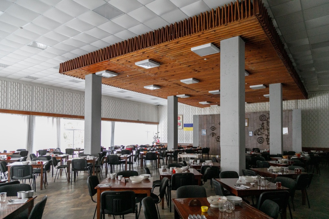Ніби портал у півстолітню минувшину – планування й оздоблення їдальні. На одній зі стін на другому поверсі центру висить карта… афганської столиці Кабулу з дарчим написом 2003 року – як згадка про те, що заклад  перепрофілювали з 1989 року для тих, хто був у складі «обмеженого контингенту» в Афганістані.