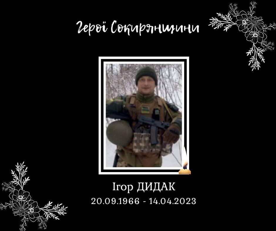 Ігор Йосифович Дидак був жителем міста Сокиряни.