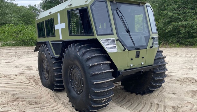 Зазначається, що всюдихід-амфібію розроблений українськими інженерами. «Машина здатна працювати на будь-якій місцевості: болотах, плавнях, глибокому снігу, та навіть під час виїзду з води на кригу. Завдяки своїм невеликим габаритам і можливості розвертатися на місці всюдихід ефективно маневрує в обмеженому просторі», – йдеться в повідомленні.