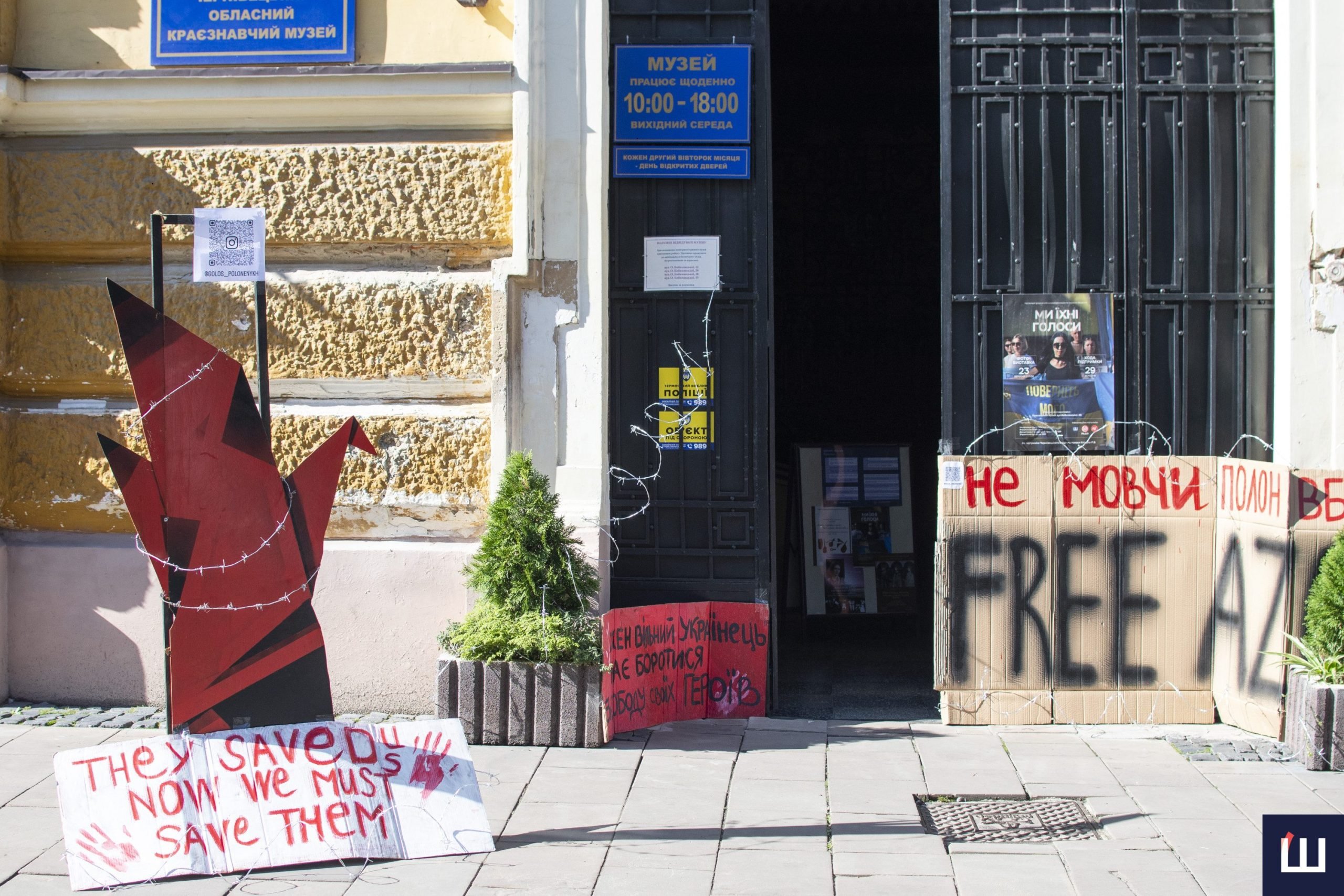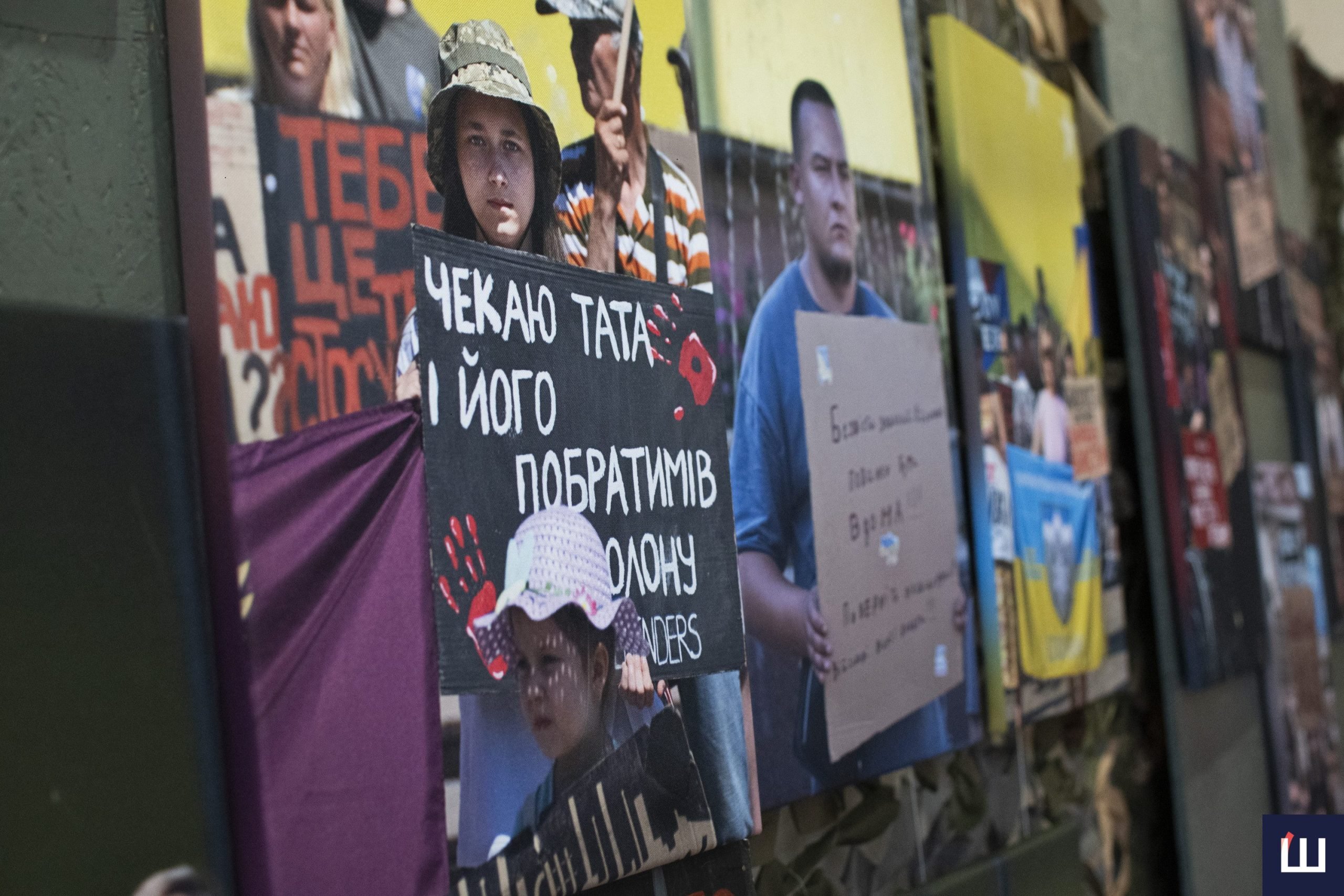 На виставці представили фотографії з акцій на підтримку військовополонених і зниклих безвісти, які проводили в Чернівцях на Центральній площі.